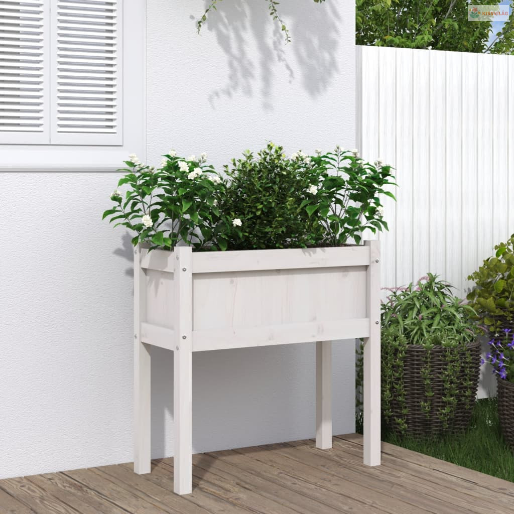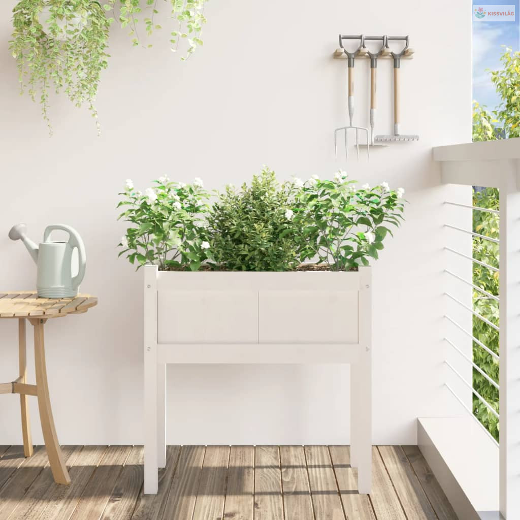 Fehér tömör fenyő kerti virágláda 70 x 31 x 70 cm