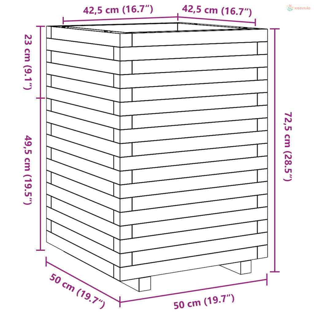 Fehér tömör fenyő virágláda 50 x 50 x 72,5 cm