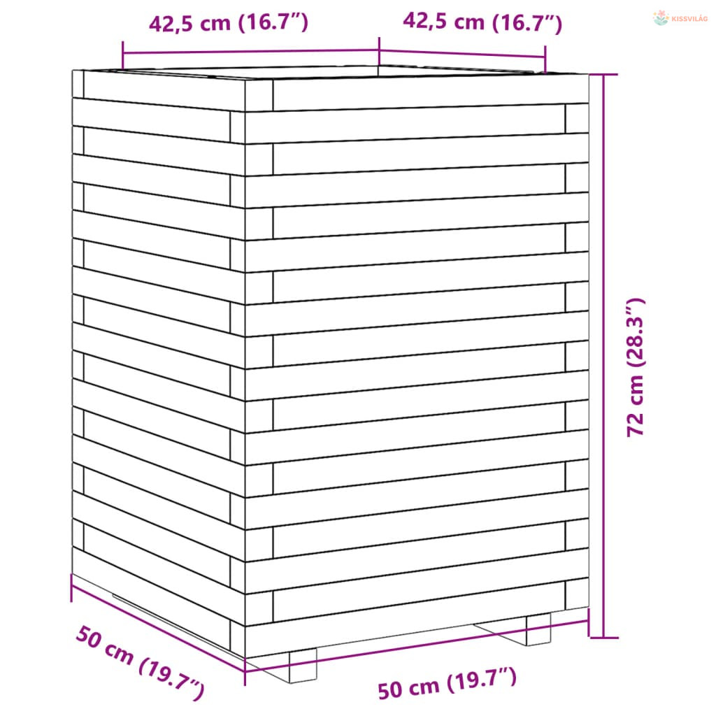 Fehér tömör fenyő virágláda 50x50x72 cm