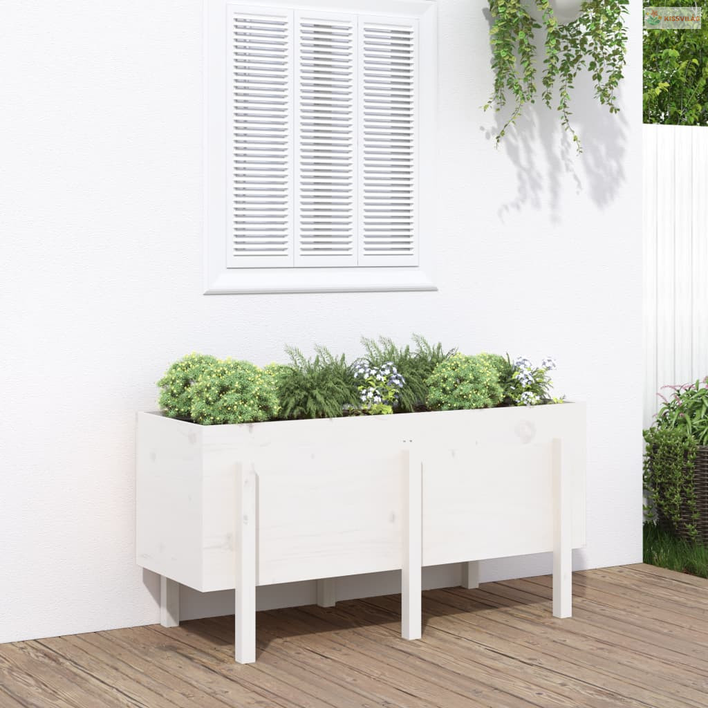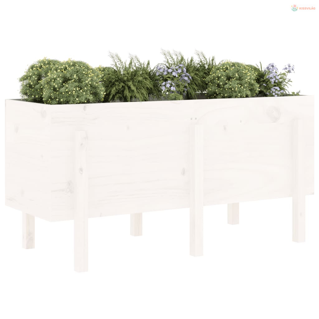 Fehér tömör fenyőfa kerti magaságyás 121 x 50 x 57 cm