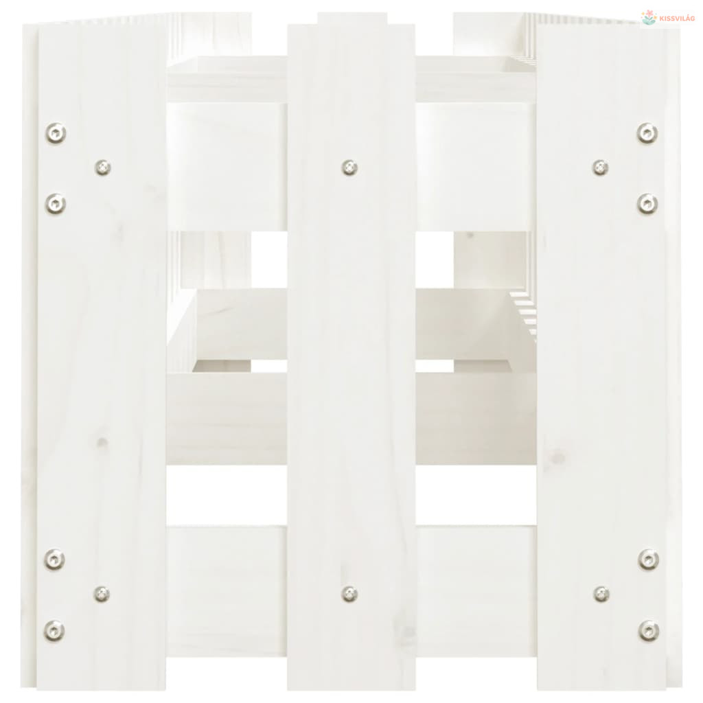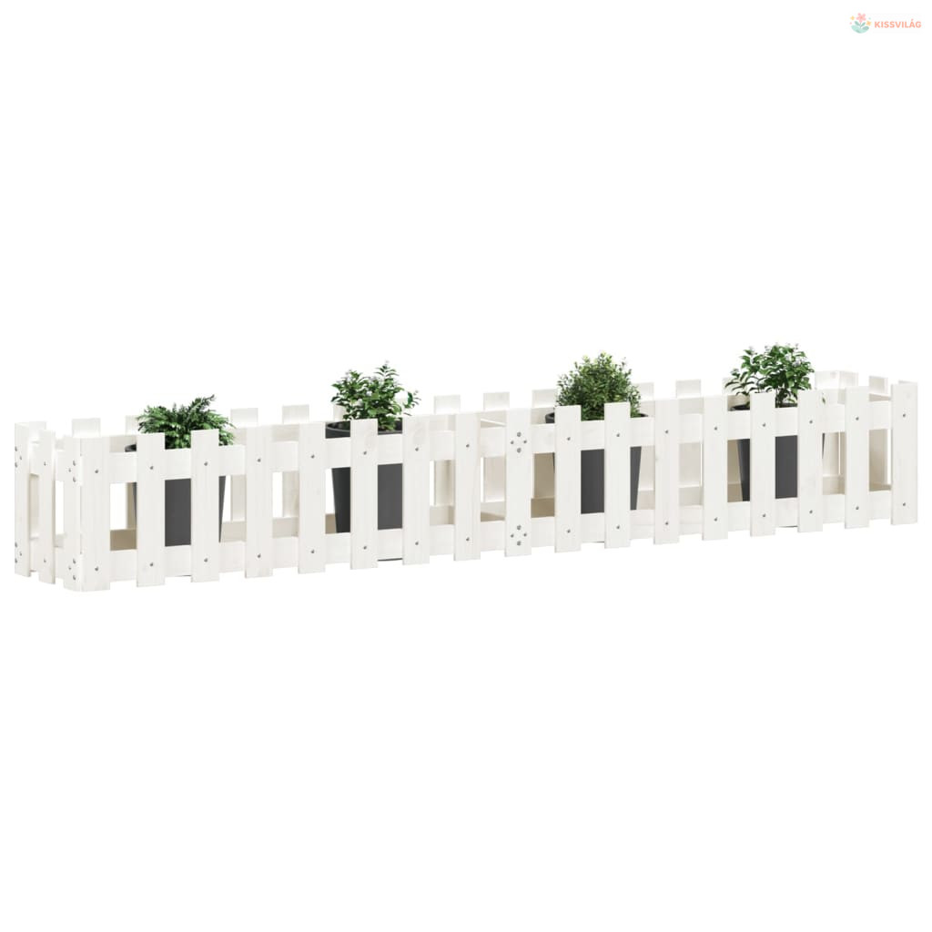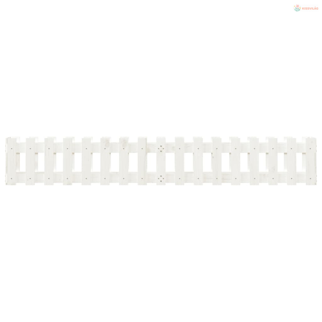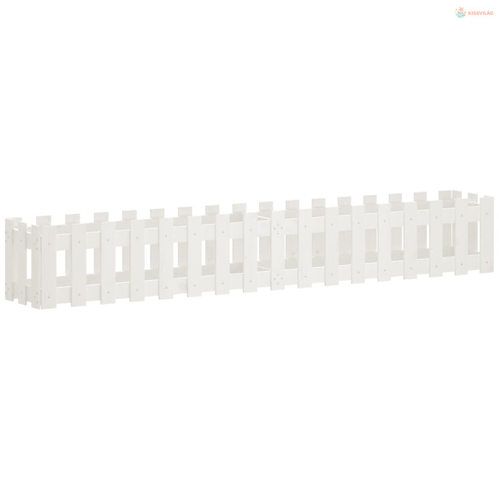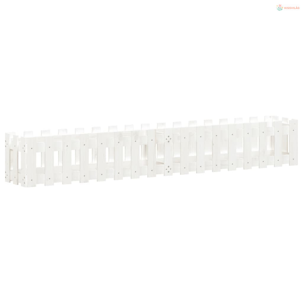 Fehér tömör fenyőfa kerti magaságyás kerítéssel 200x30x30 cm