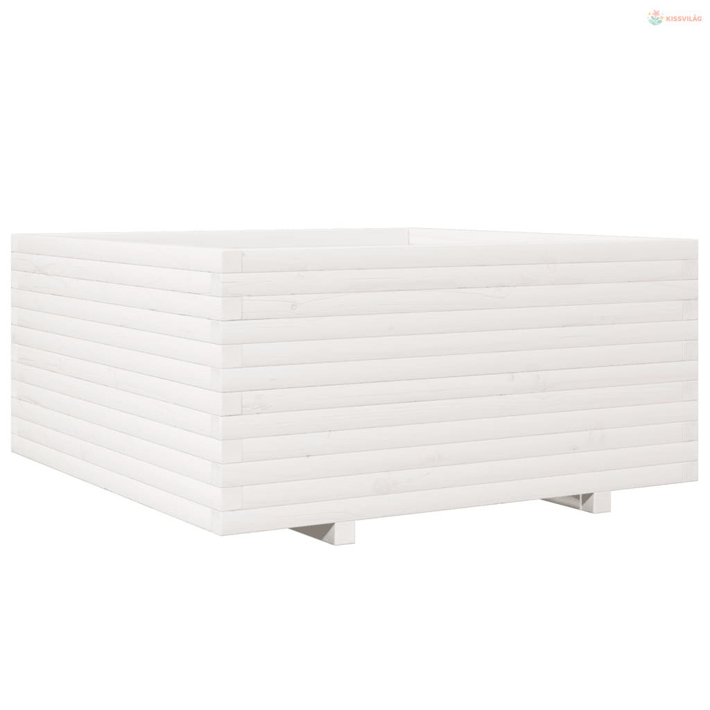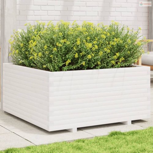 Fehér tömör fenyőfa kerti virágláda 100 x 100 x 49,5 cm