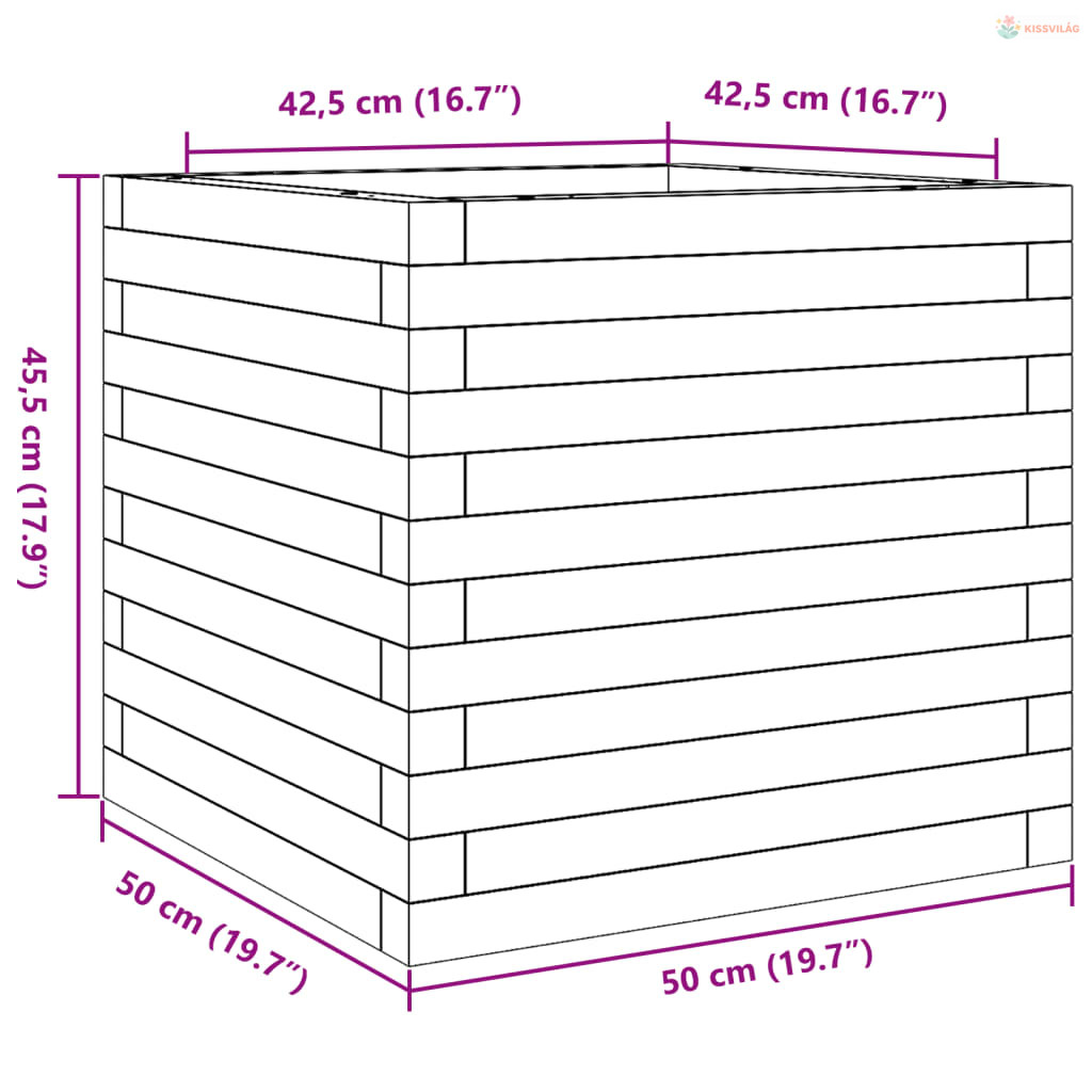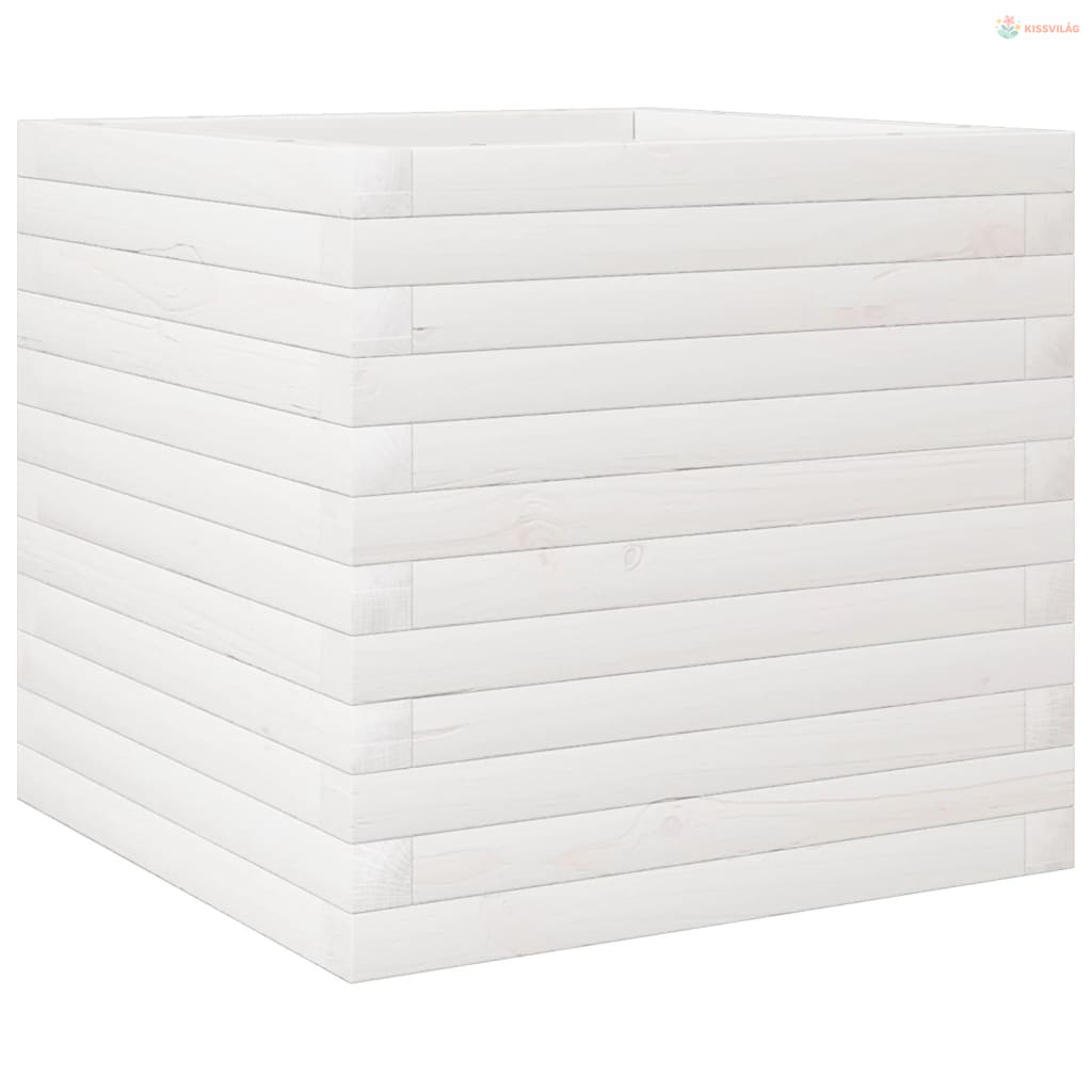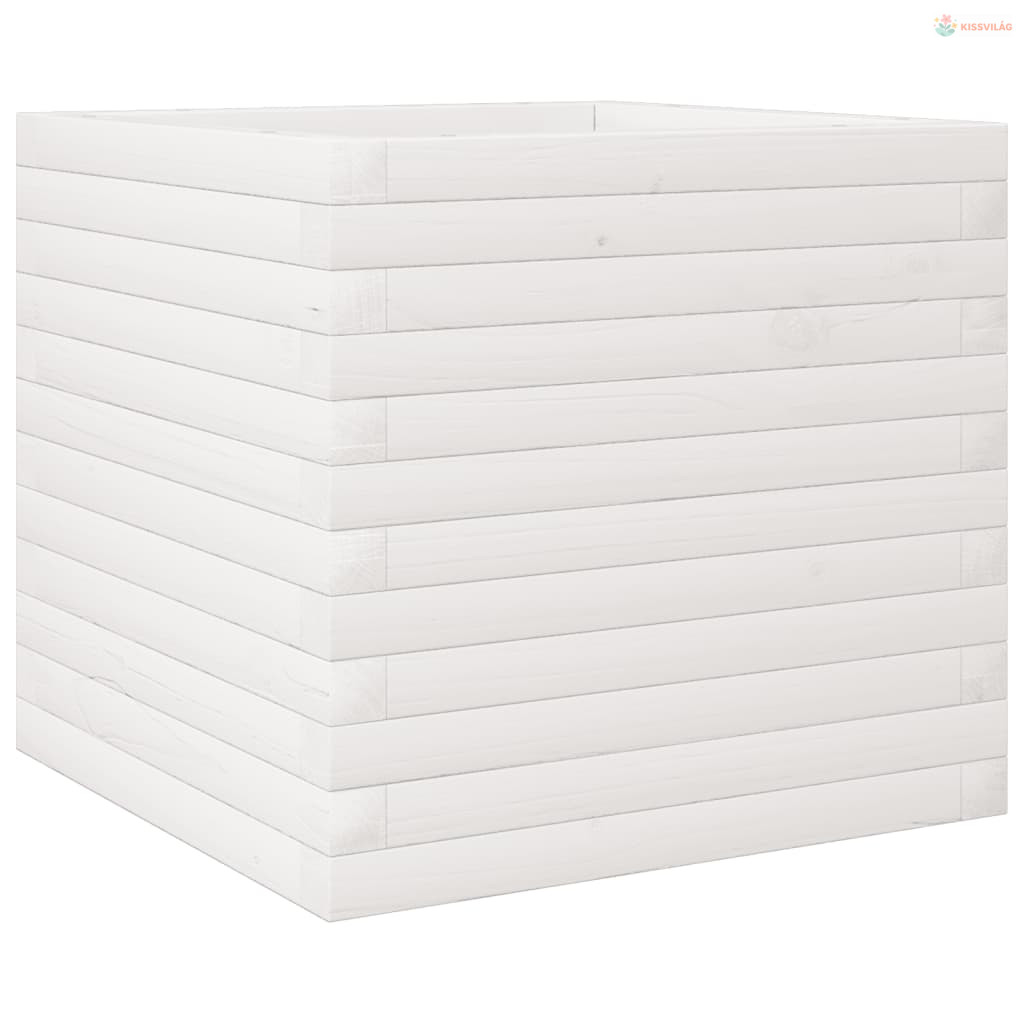Fehér tömör fenyőfa kerti virágláda 50 x 50 x 45,5 cm