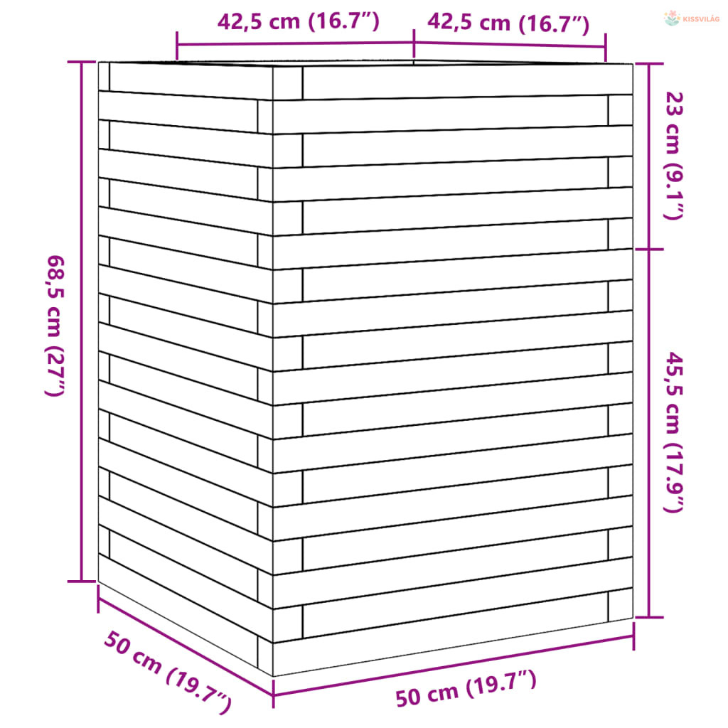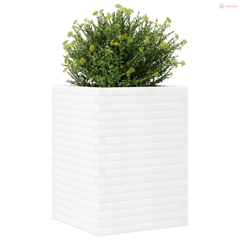 Fehér tömör fenyőfa kerti virágláda 50 x 50 x 68,5 cm