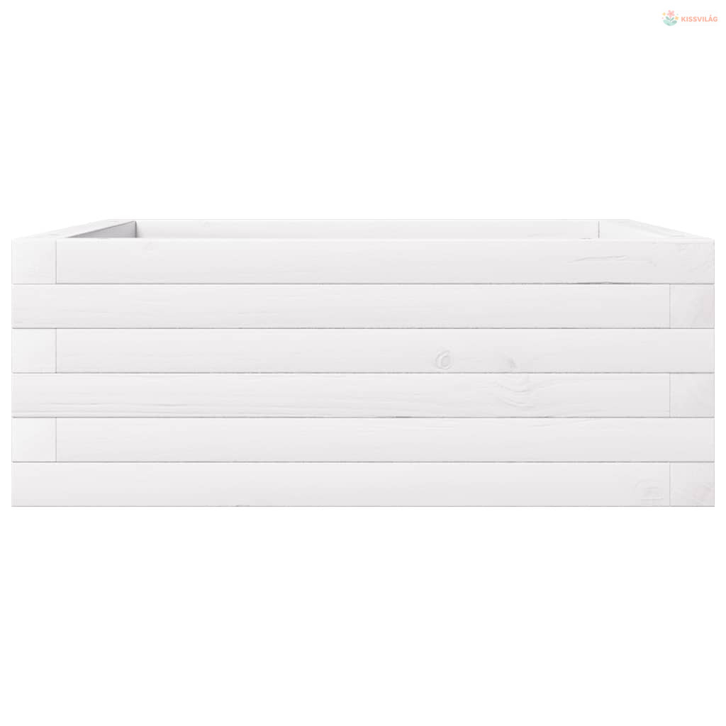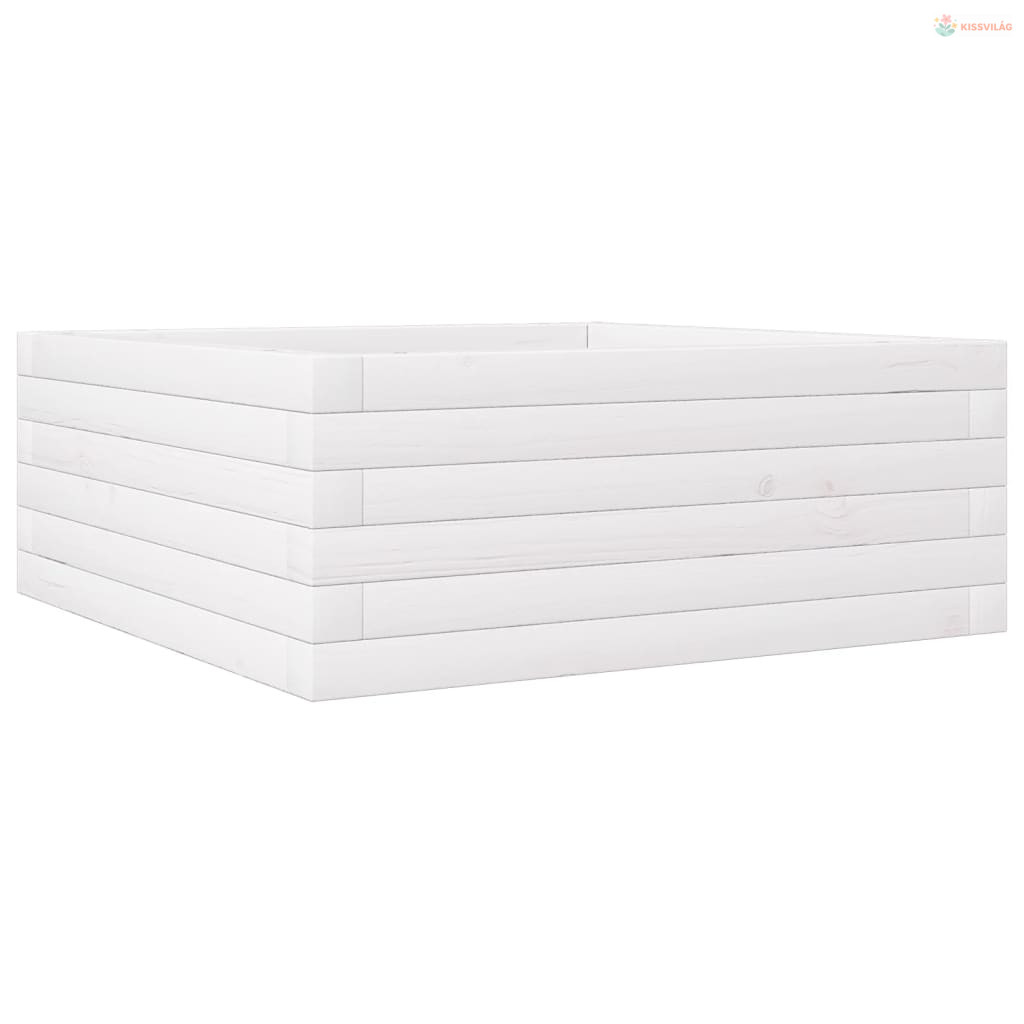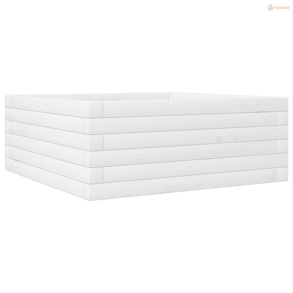 Fehér tömör fenyőfa kerti virágláda 60 x 60 x 23 cm