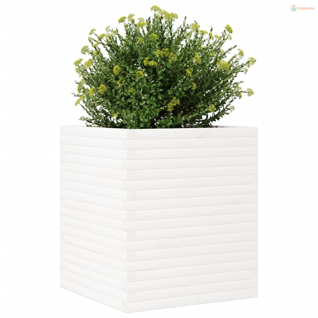 Fehér tömör fenyőfa kerti virágláda 60 x 60 x 68,5 cm