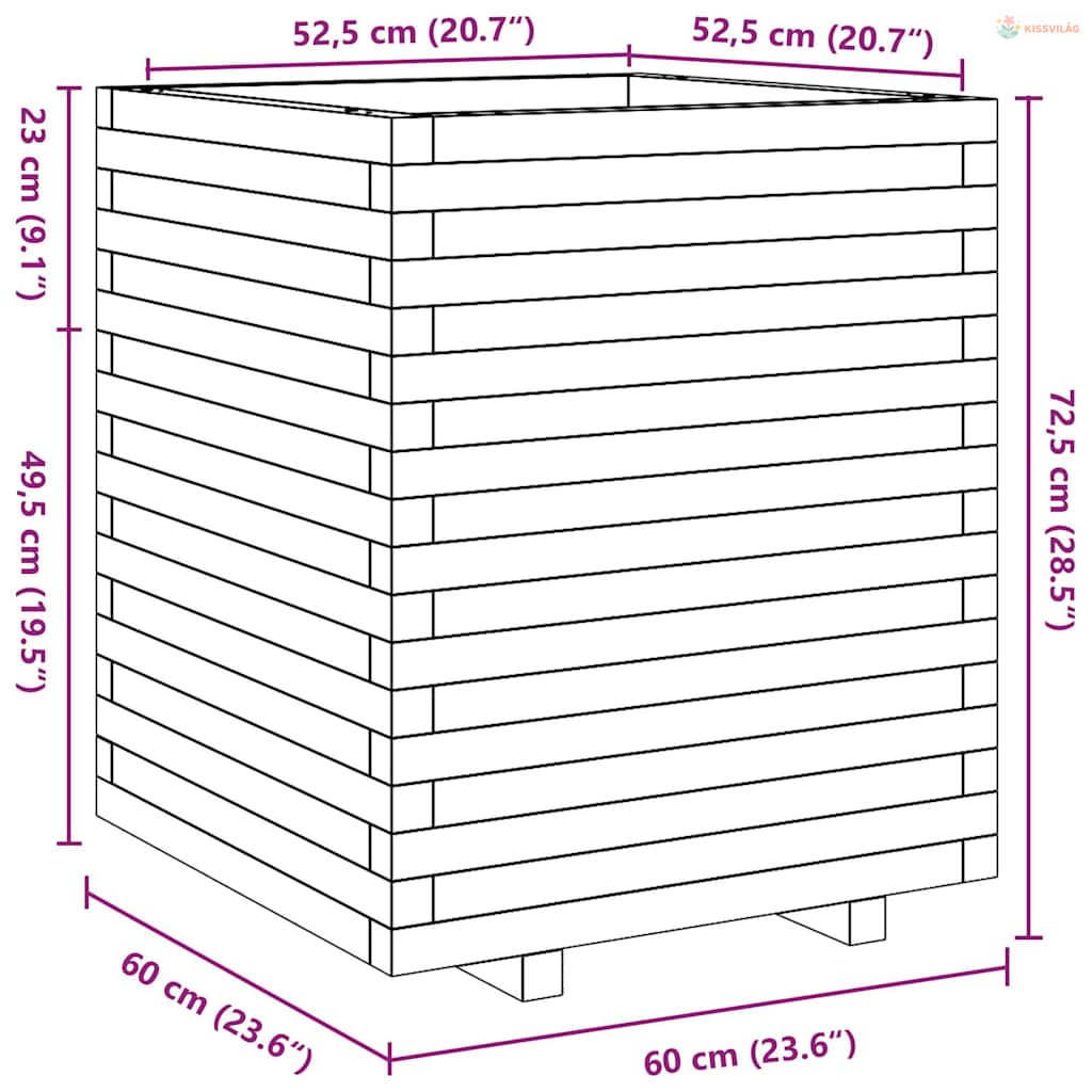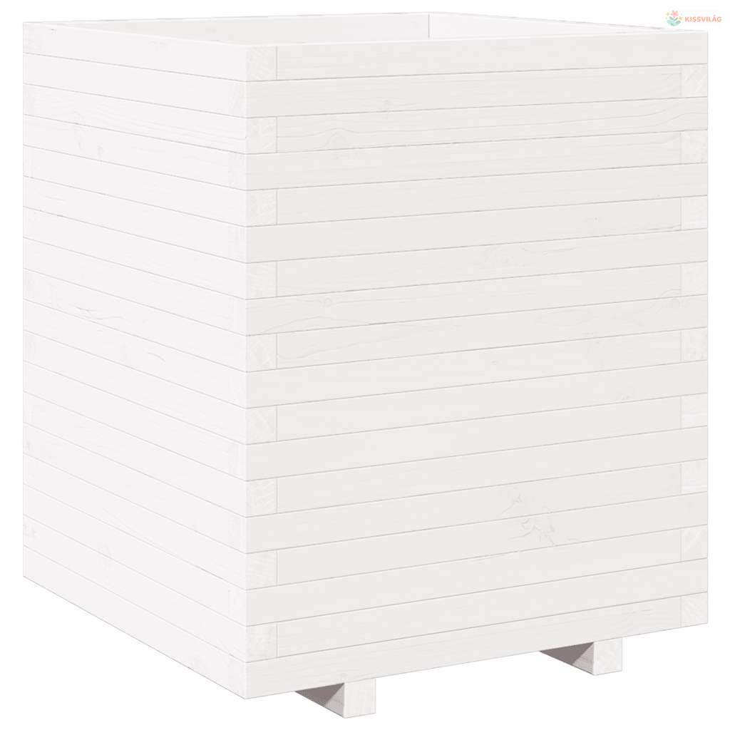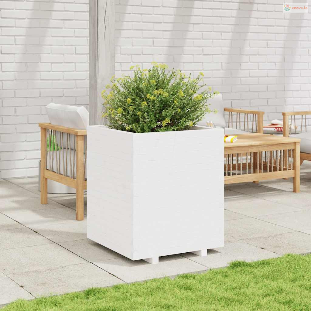 Fehér tömör fenyőfa kerti virágláda 60 x 60 x 72,5 cm