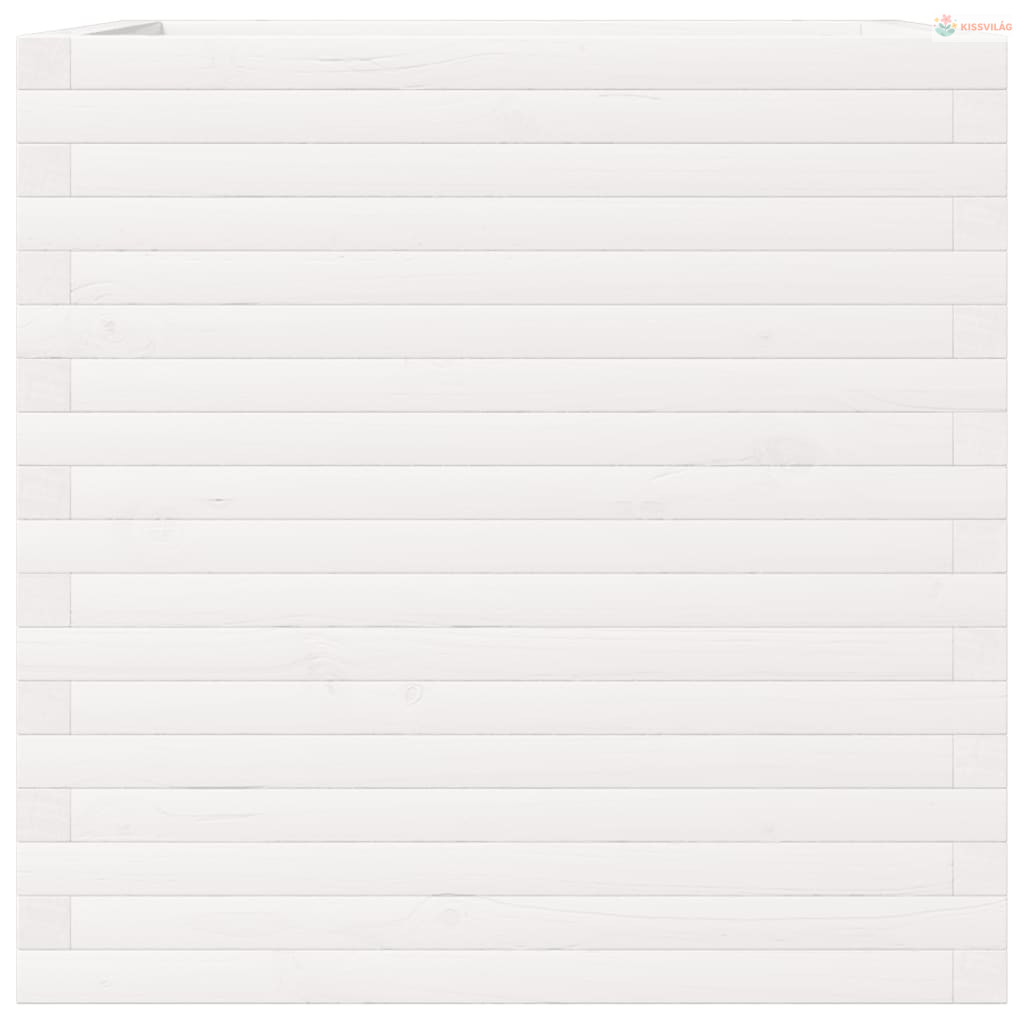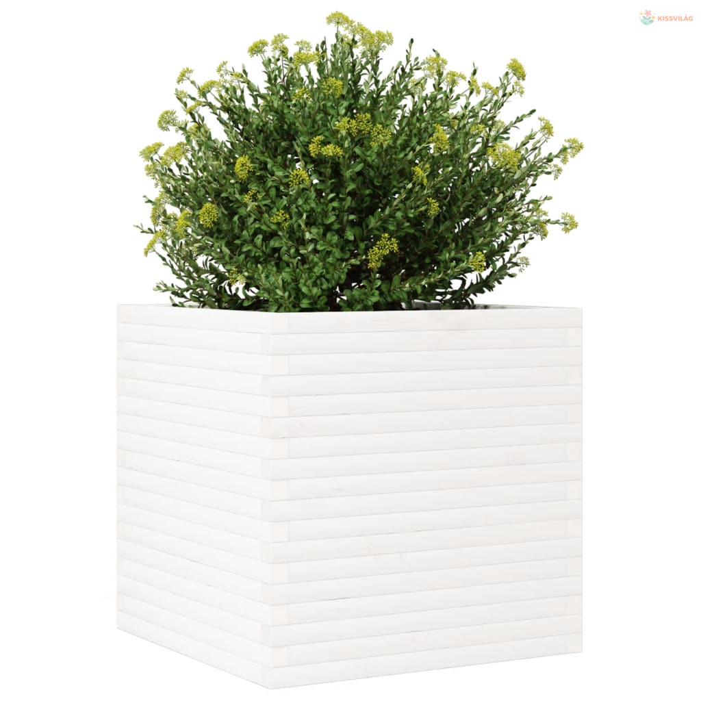 Fehér tömör fenyőfa kerti virágláda 70 x 70 x 68,5 cm
