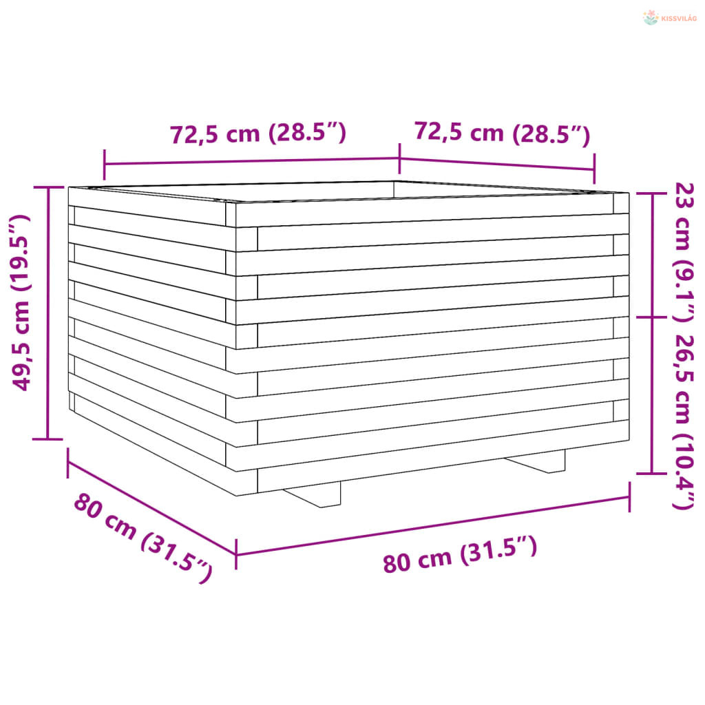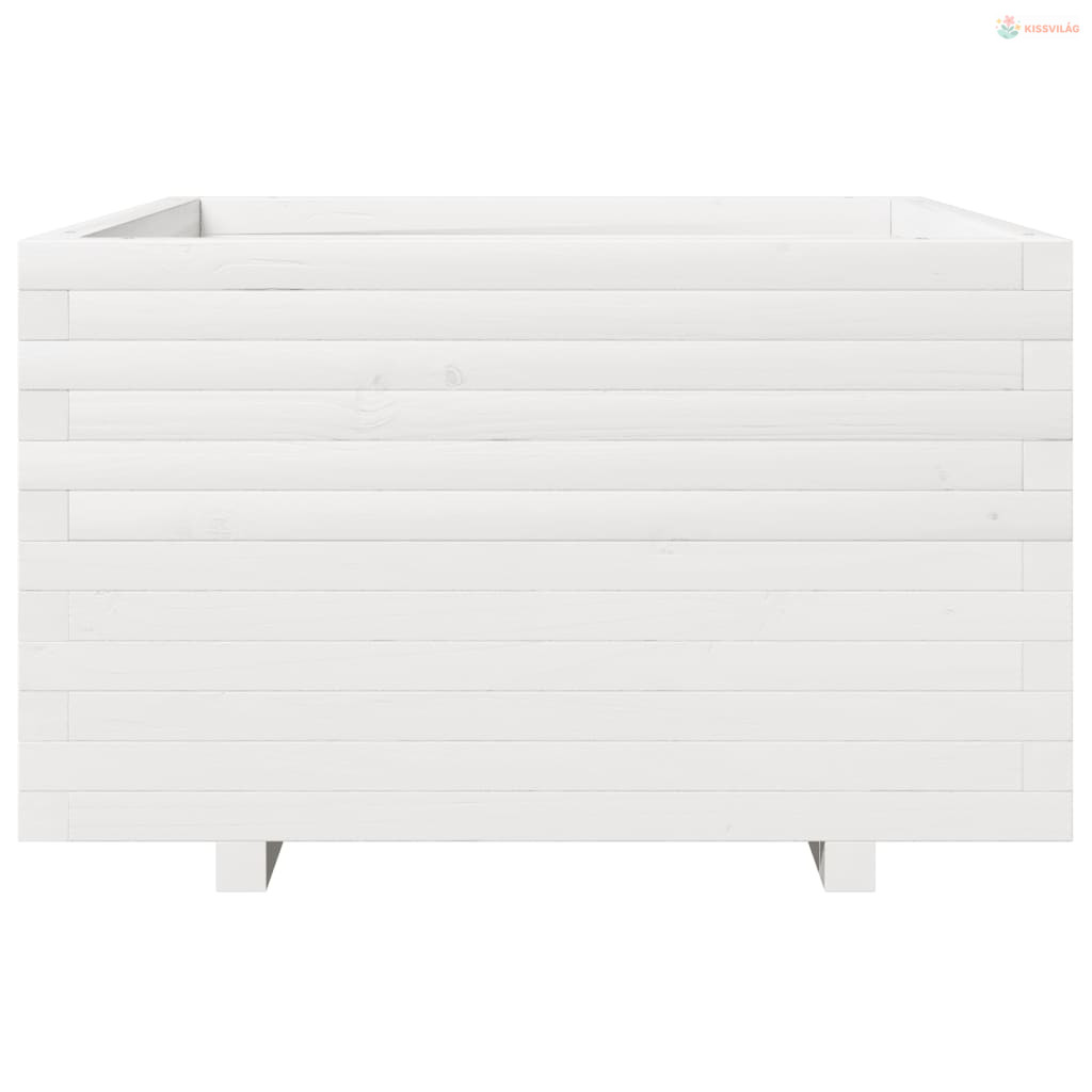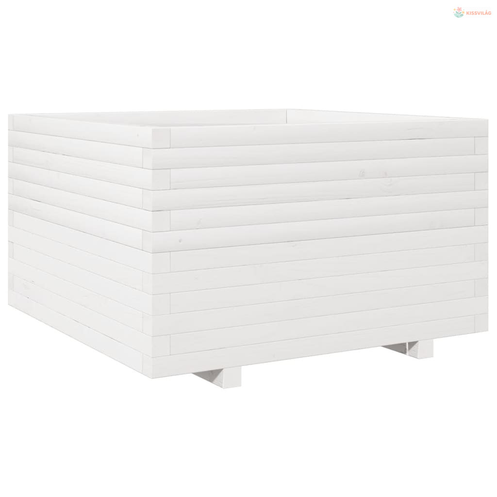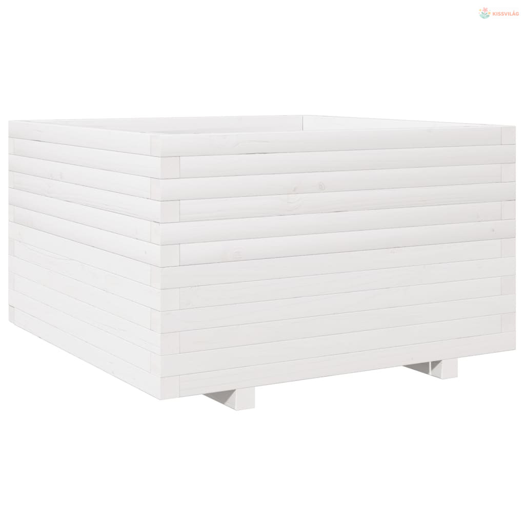 Fehér tömör fenyőfa kerti virágláda 80 x 80 x 49,5 cm