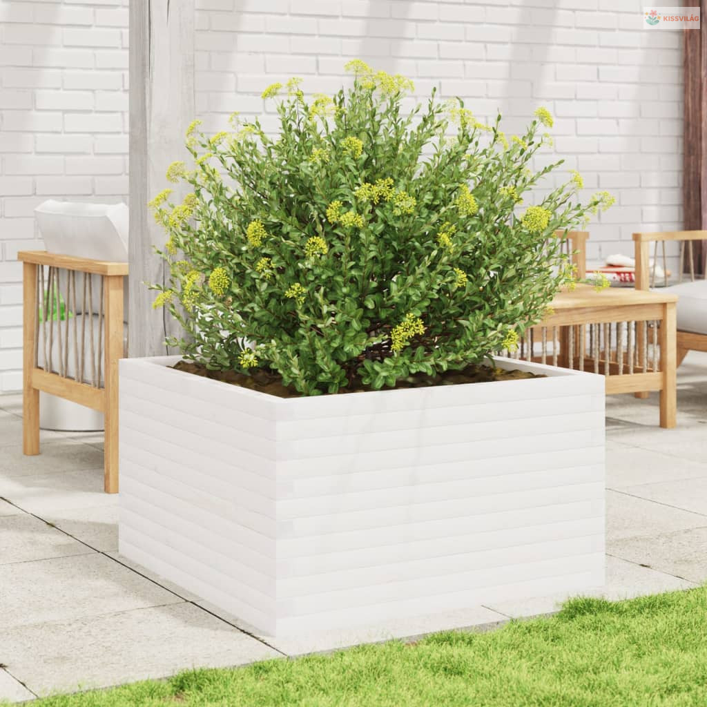 Fehér tömör fenyőfa kerti virágláda 80x80x45,5 cm