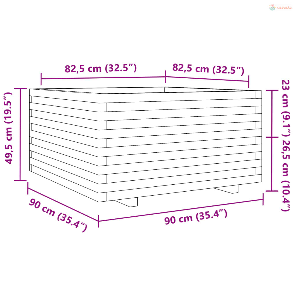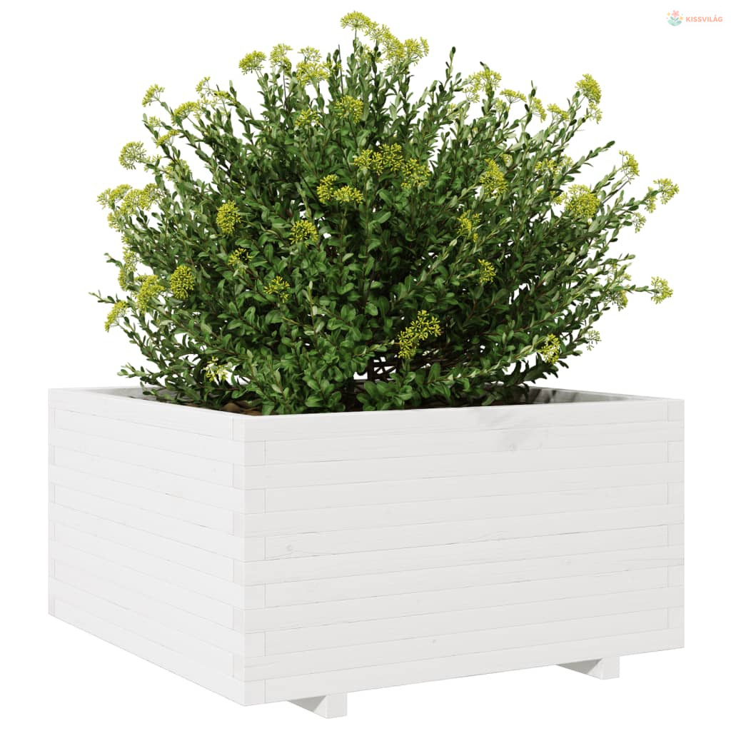 Fehér tömör fenyőfa kerti virágláda 90 x 90 x 49,5 cm