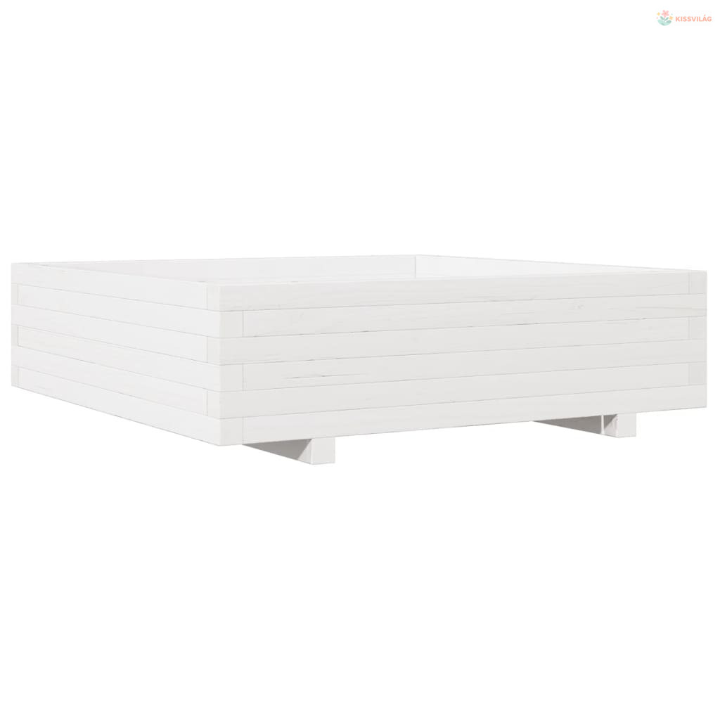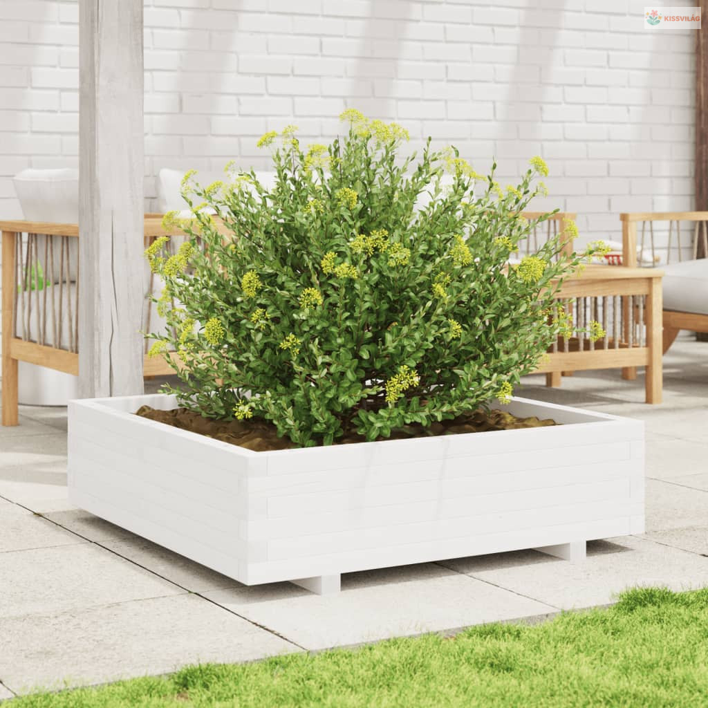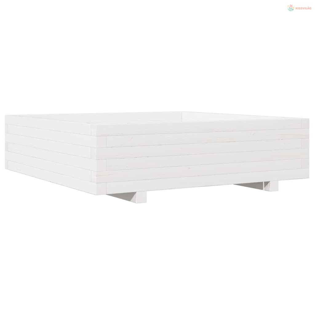 Fehér tömör fenyőfa kerti virágláda 90x90x26,5 cm