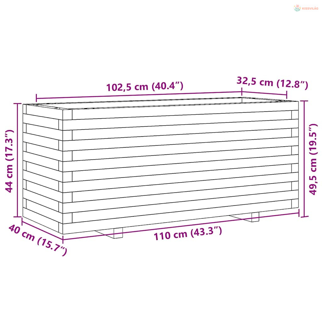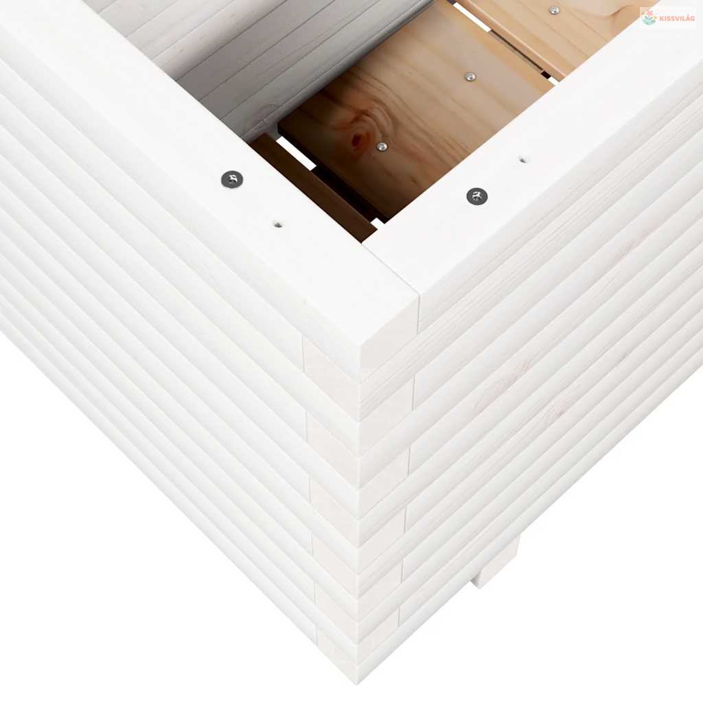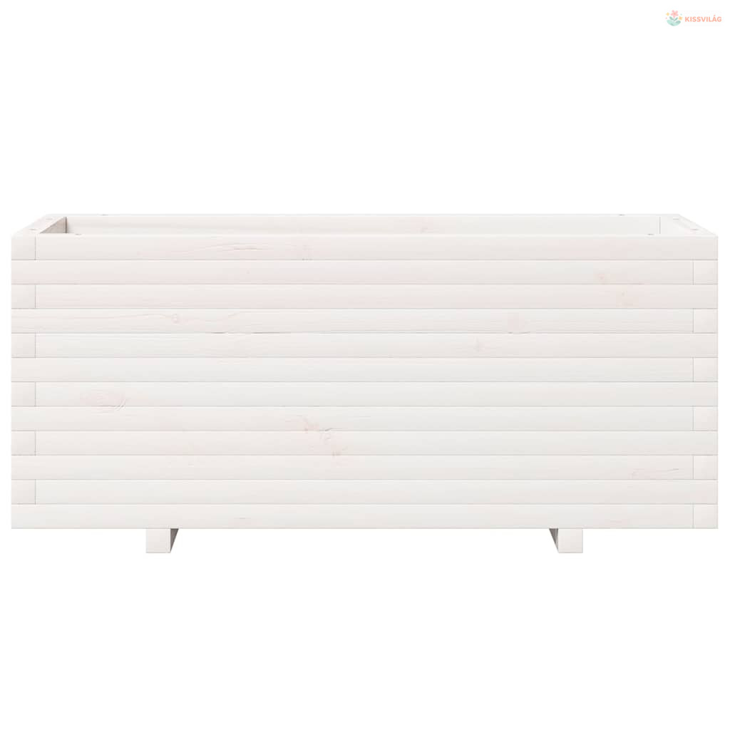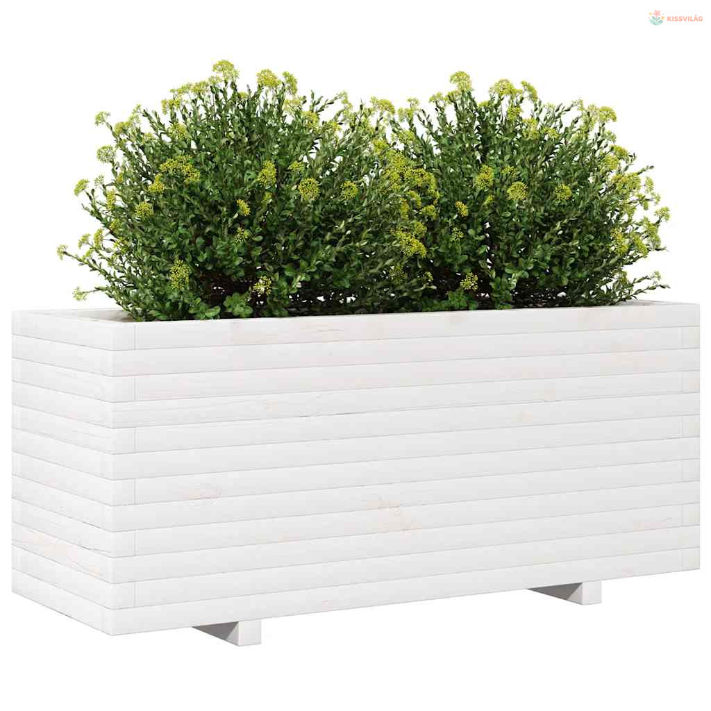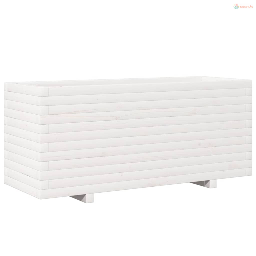 Fehér tömör fenyőfa kerti virágtartó 110 x 40 x 49,5 cm