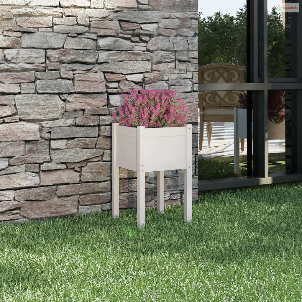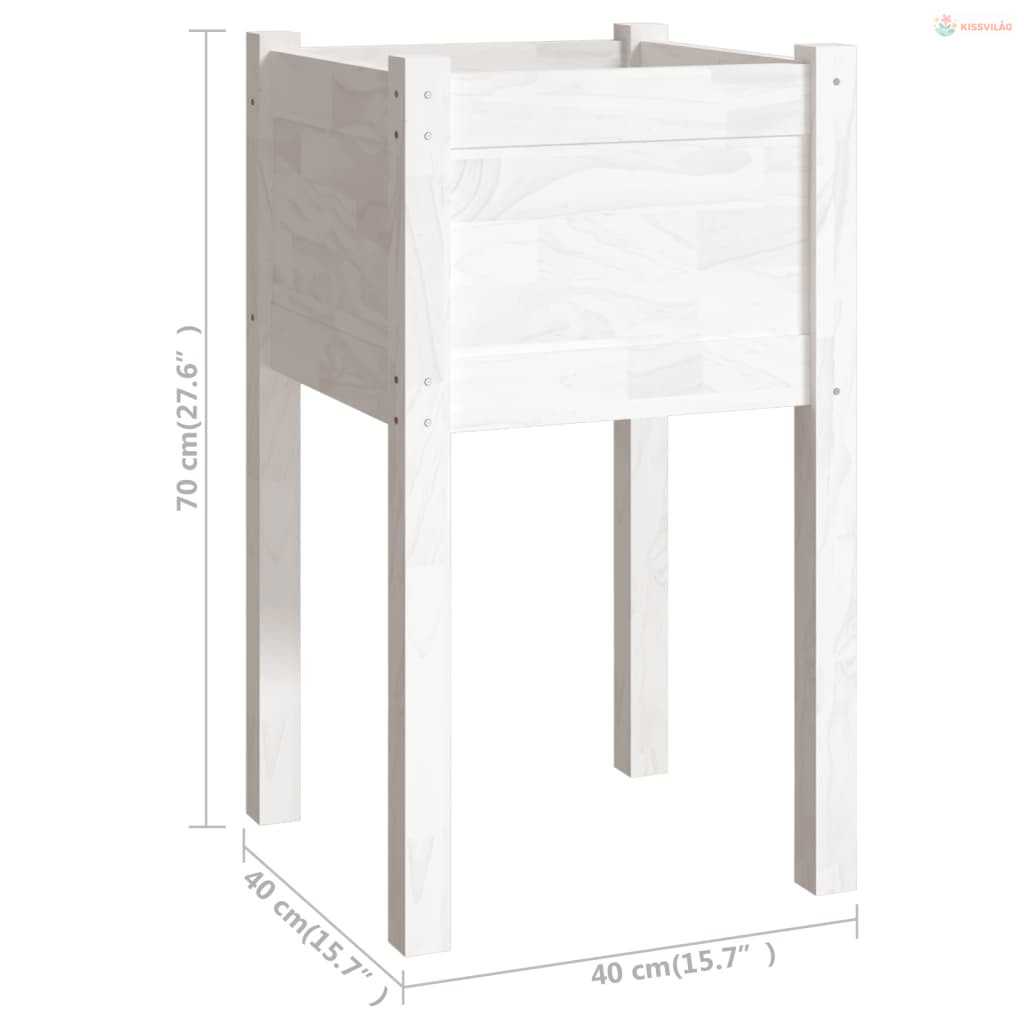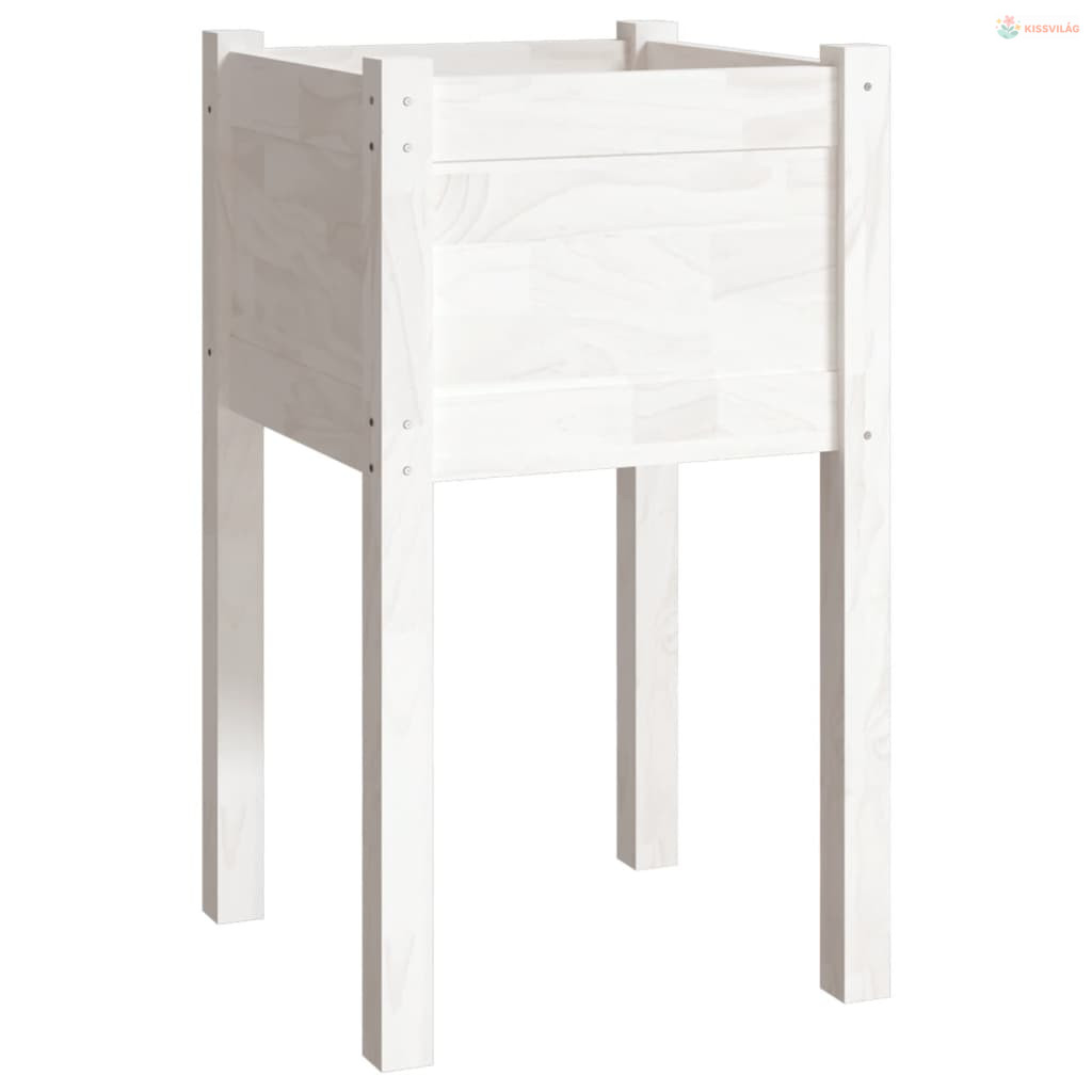 Fehér tömör fenyőfa kerti virágtartó 40 x 40 x 70 cm