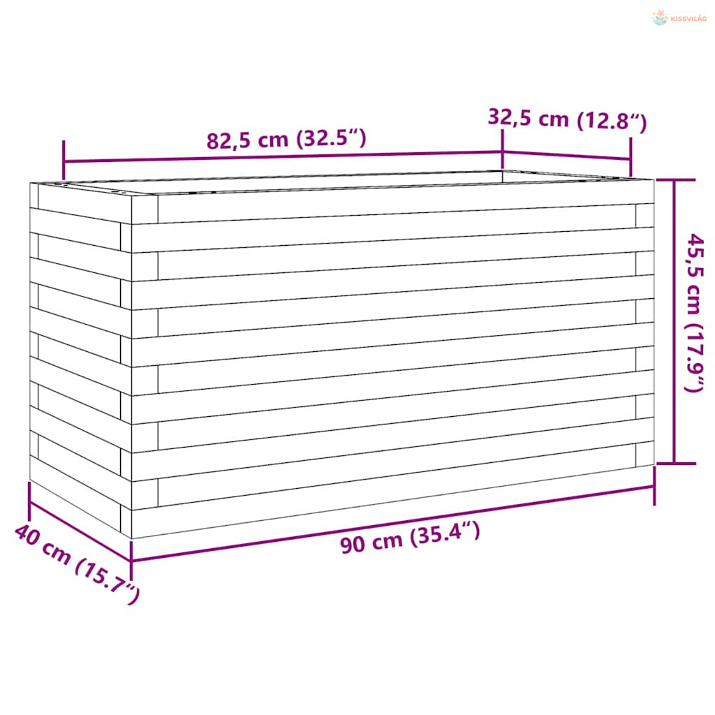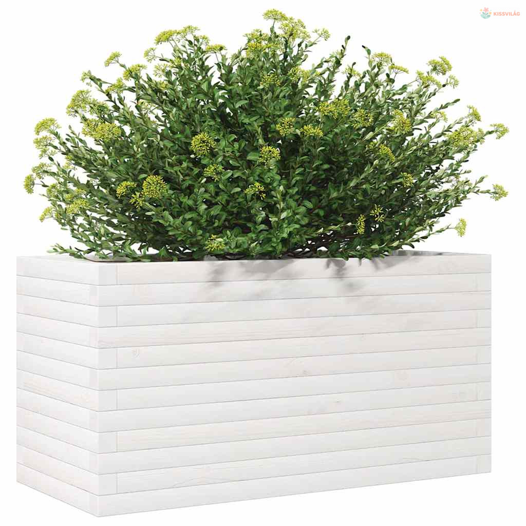 Fehér tömör fenyőfa kerti virágtartó 90 x 40 x 45,5 cm