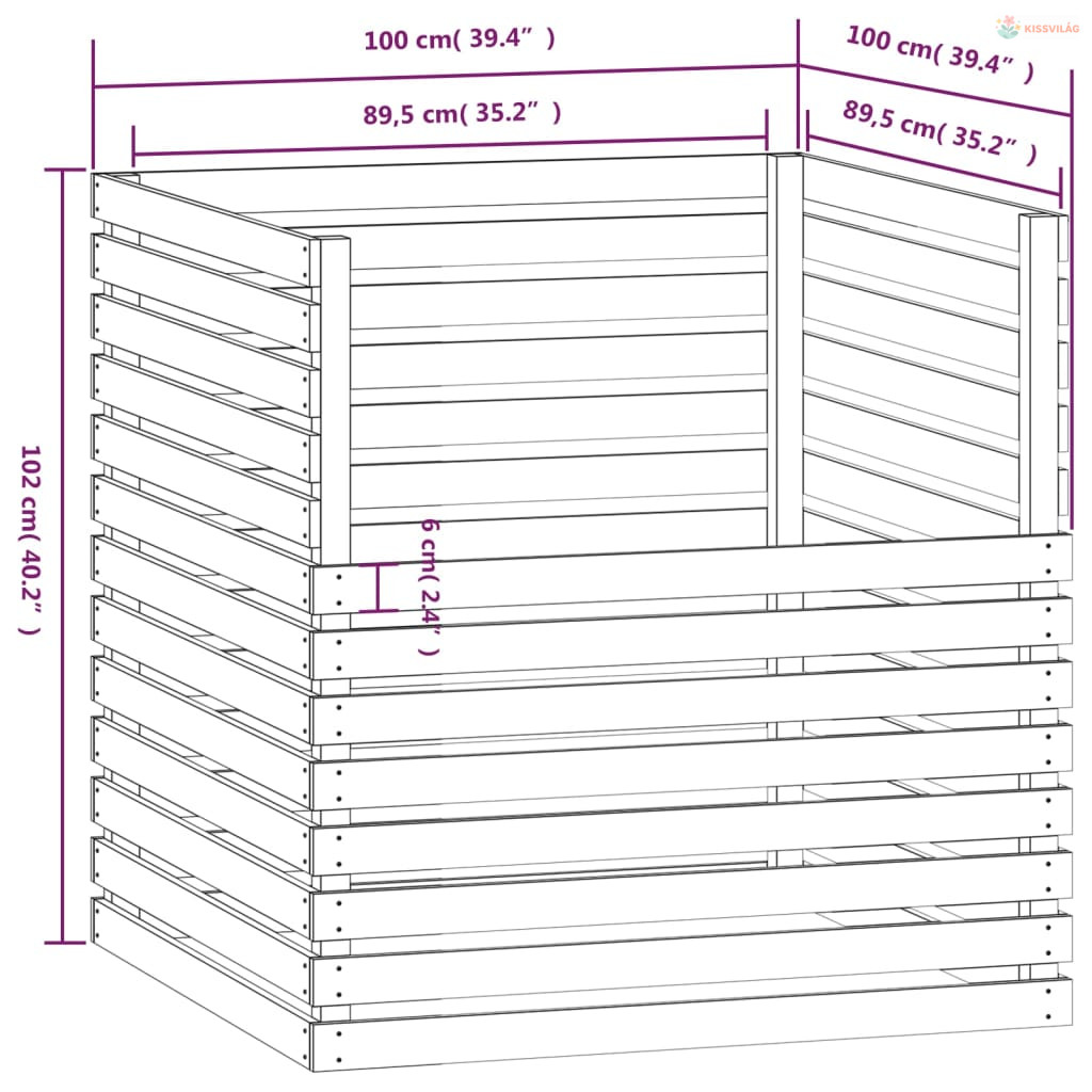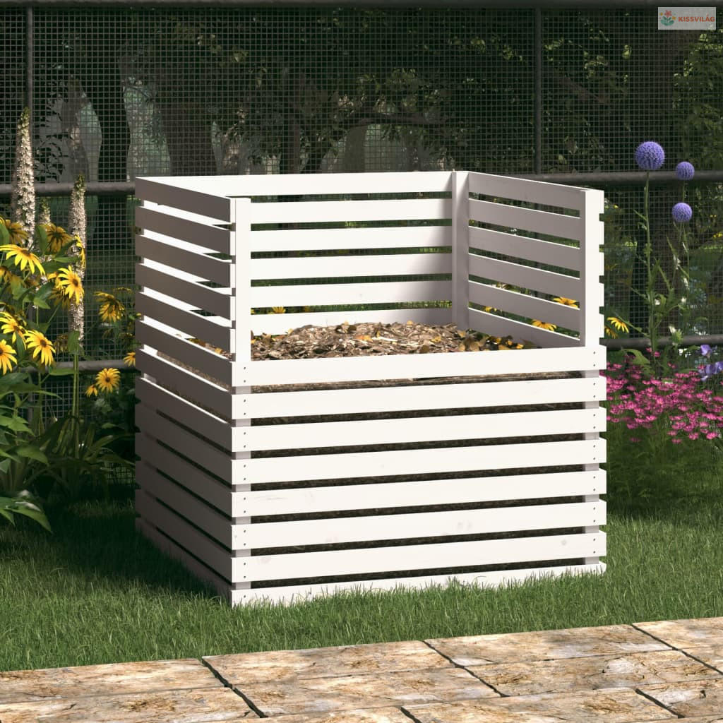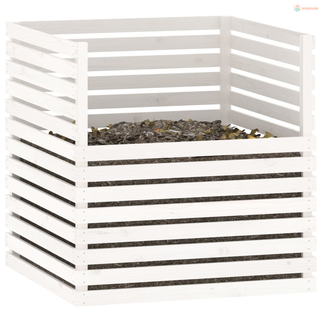 Fehér tömör fenyőfa komposztáló 100x100x102 cm