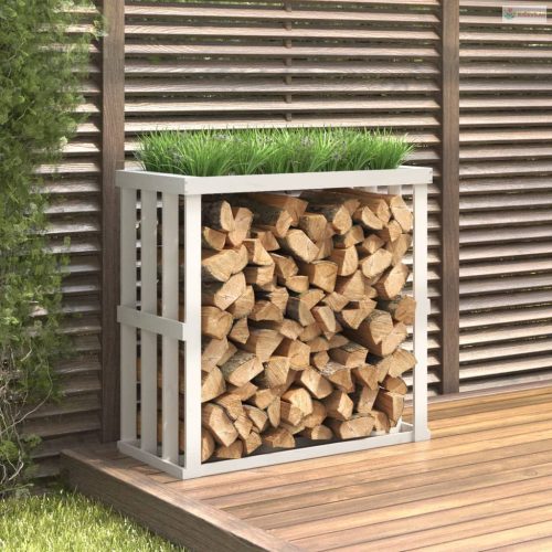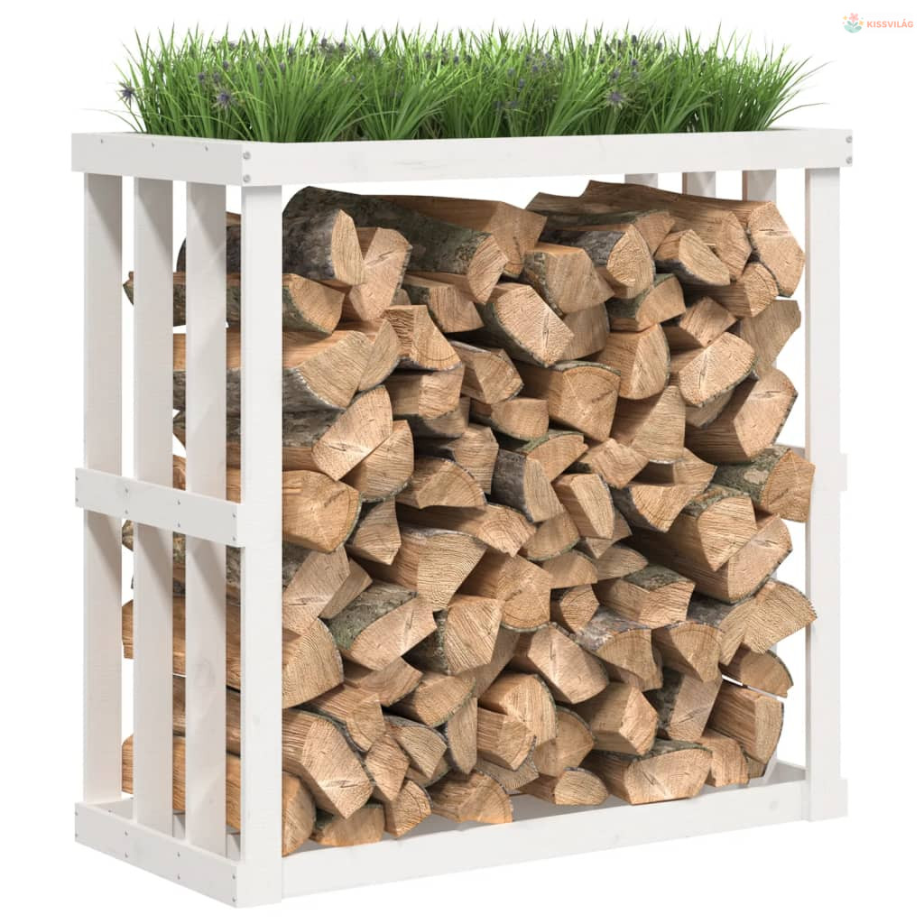 Fehér tömör fenyőfa kültéri rönktároló 108 x 52 x 106 cm