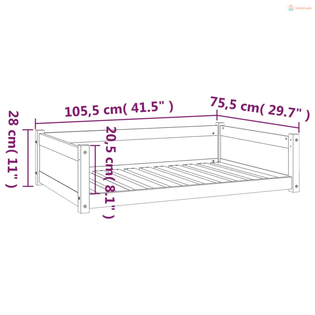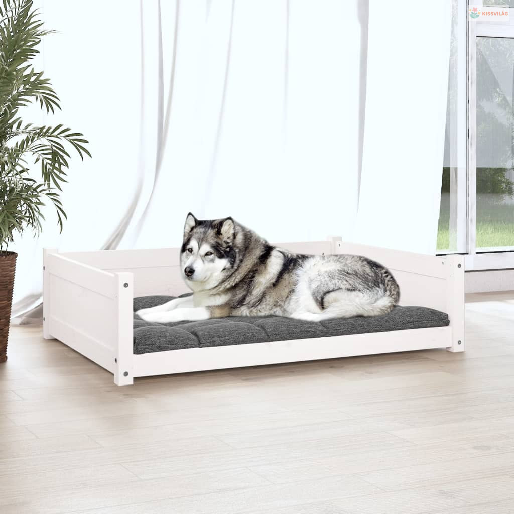 Fehér tömör fenyőfa kutyaágy 105,5x75,5x28 cm