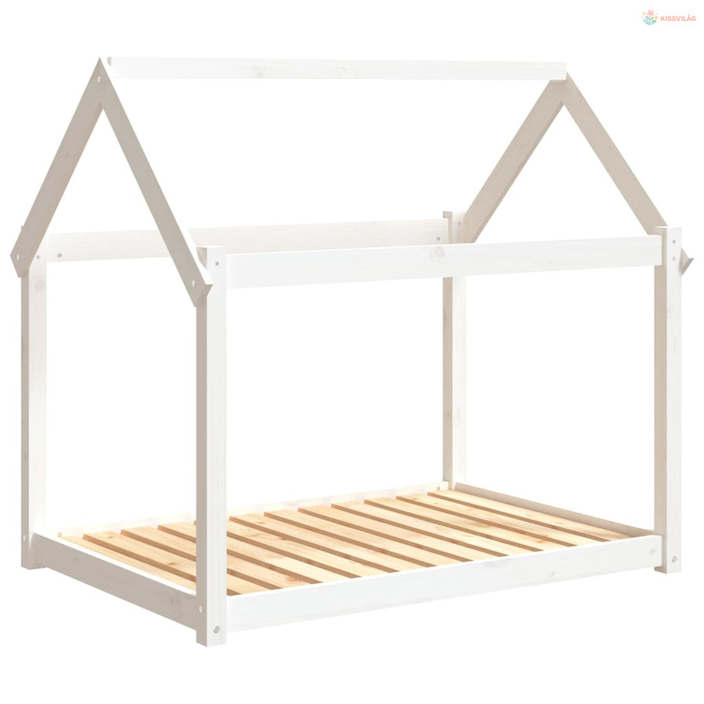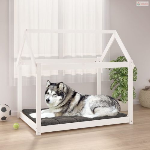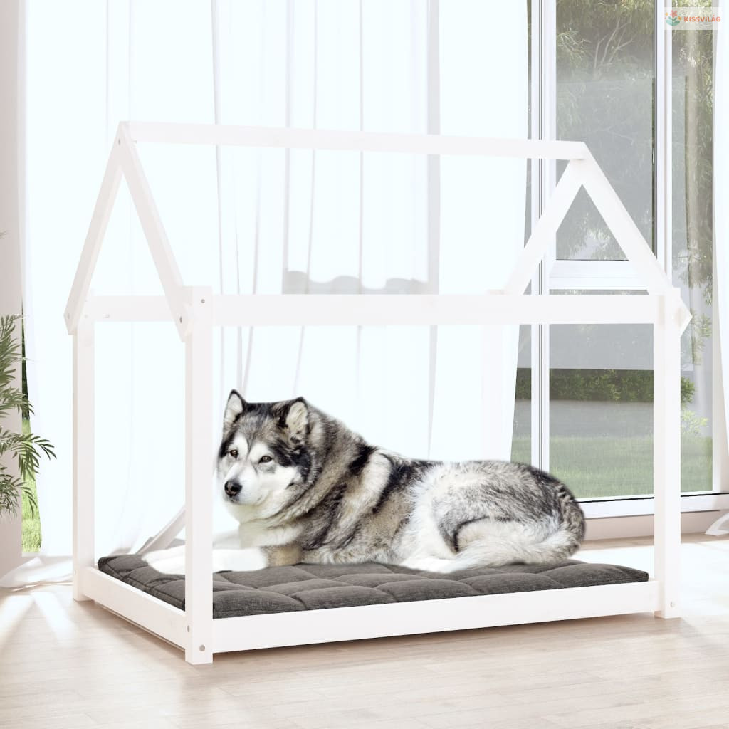 Fehér tömör fenyőfa kutyaágy 111x80x100 cm