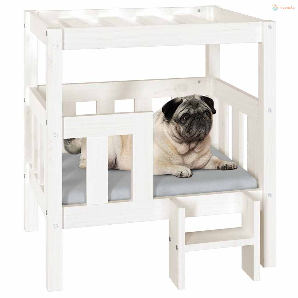 Fehér tömör fenyőfa kutyaágy 65,5x50,5x70 cm