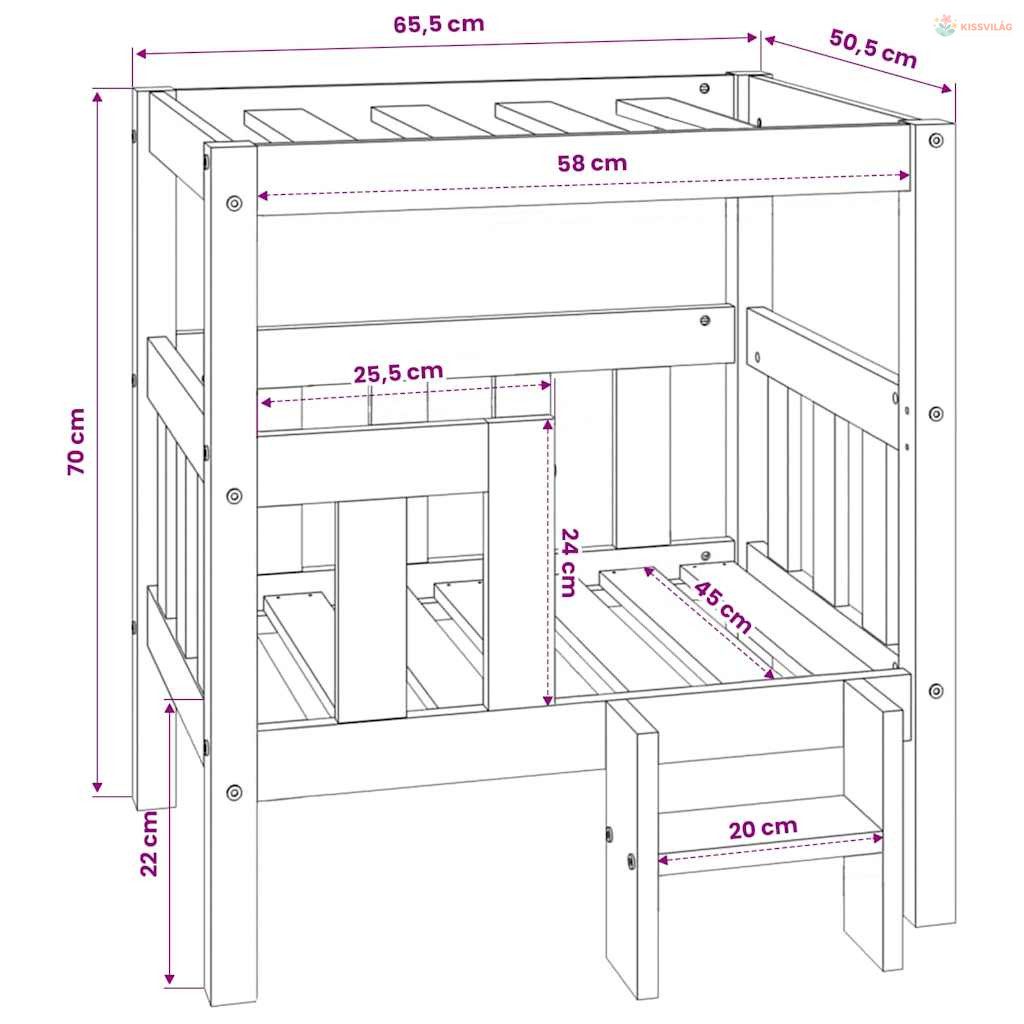 • Egyszerű kialakítás: A téglalap alakú, egyszerű, sallang nélküli, fából készült kisállatágy különösen alkalmas a minimalista lakóterületekhez.