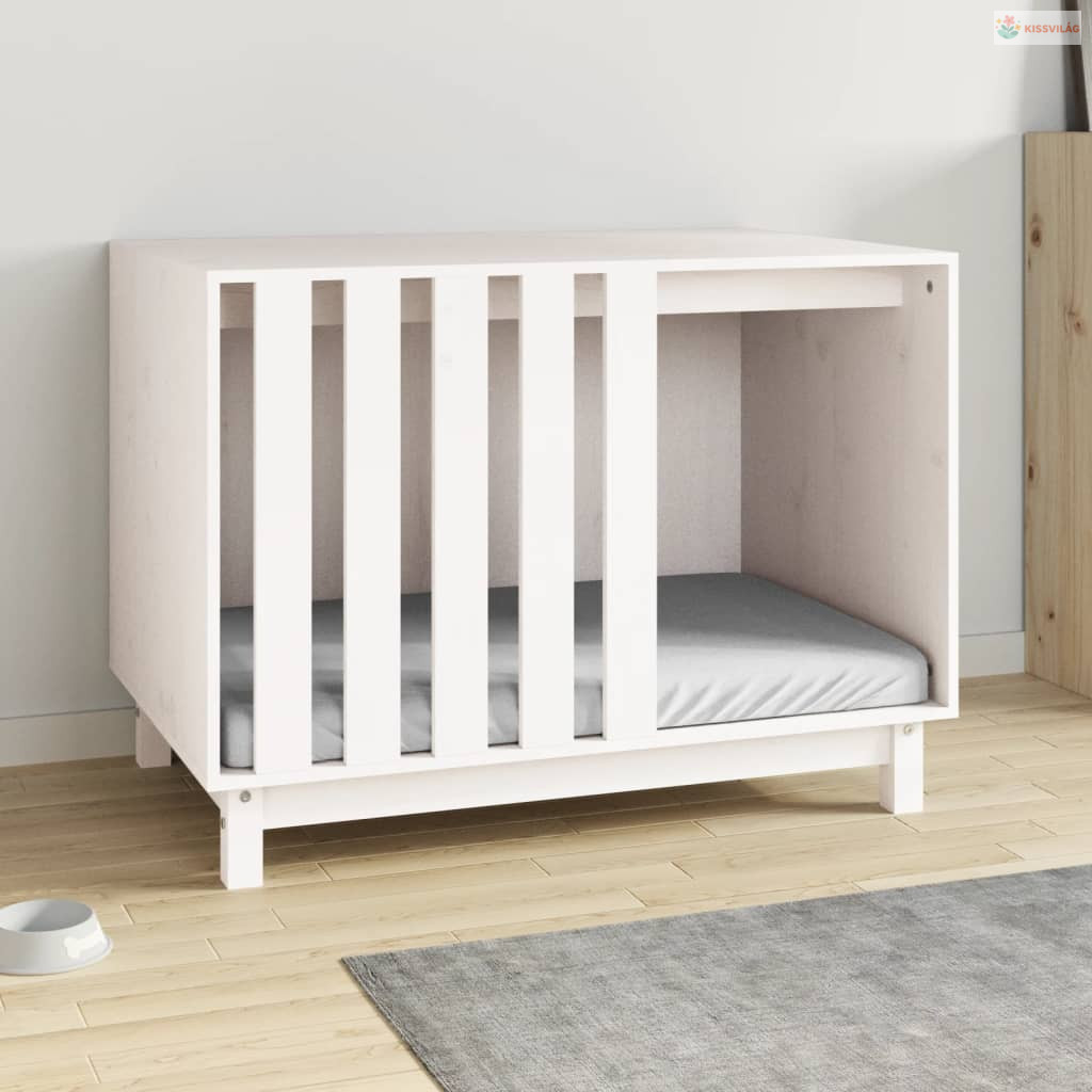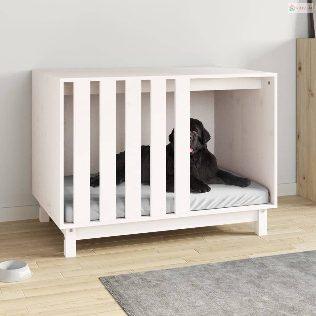 Fehér tömör fenyőfa kutyaház 90 x 60 x 67 cm