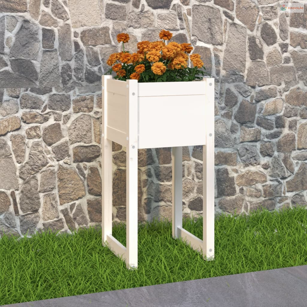 Fehér tömör fenyőfa növénytartó 40x40x81 cm