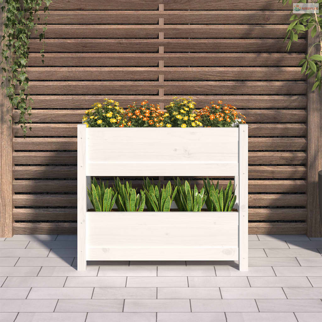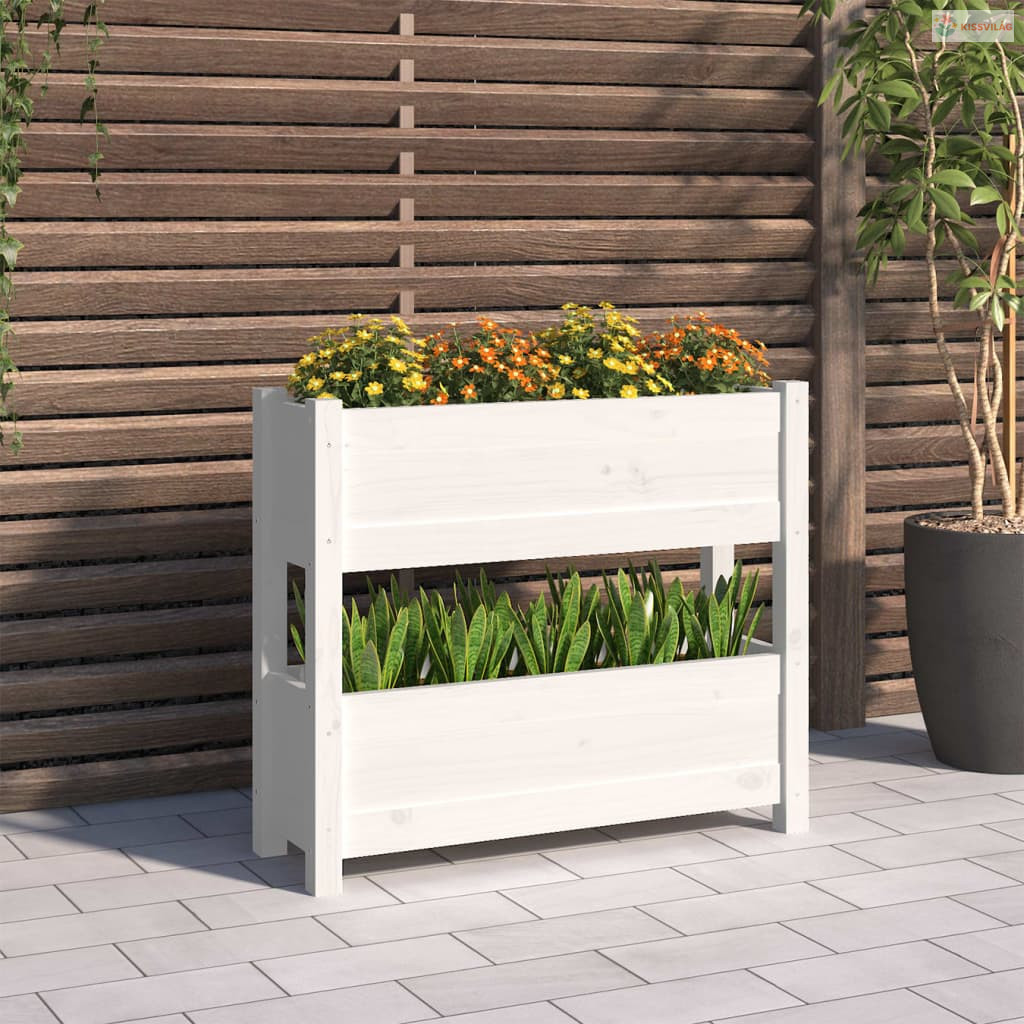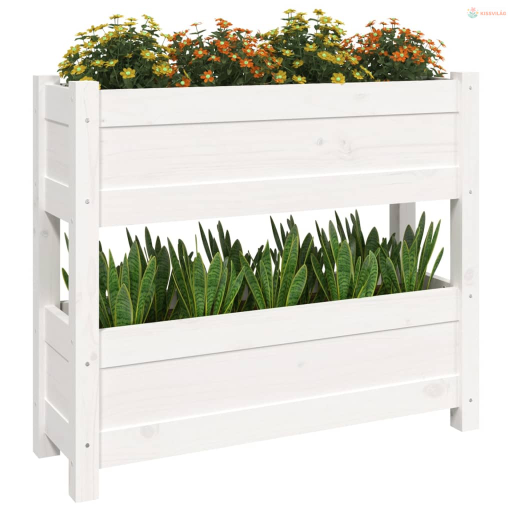 Fehér tömör fenyőfa növénytartó 77x25x66 cm