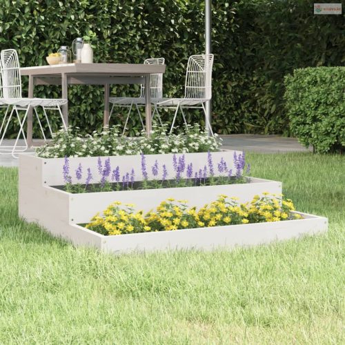 Fehér tömör fenyőfa növénytartó 78x78x27 cm