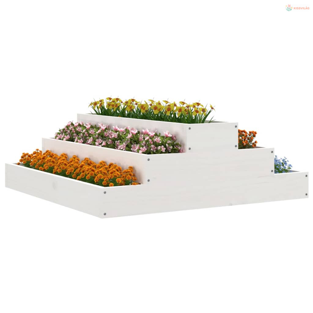 Fehér tömör fenyőfa növénytartó 80x80x27 cm