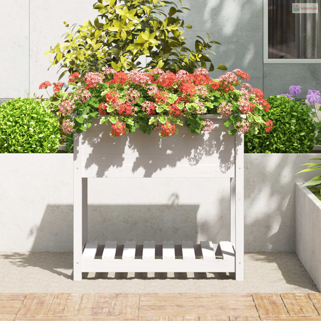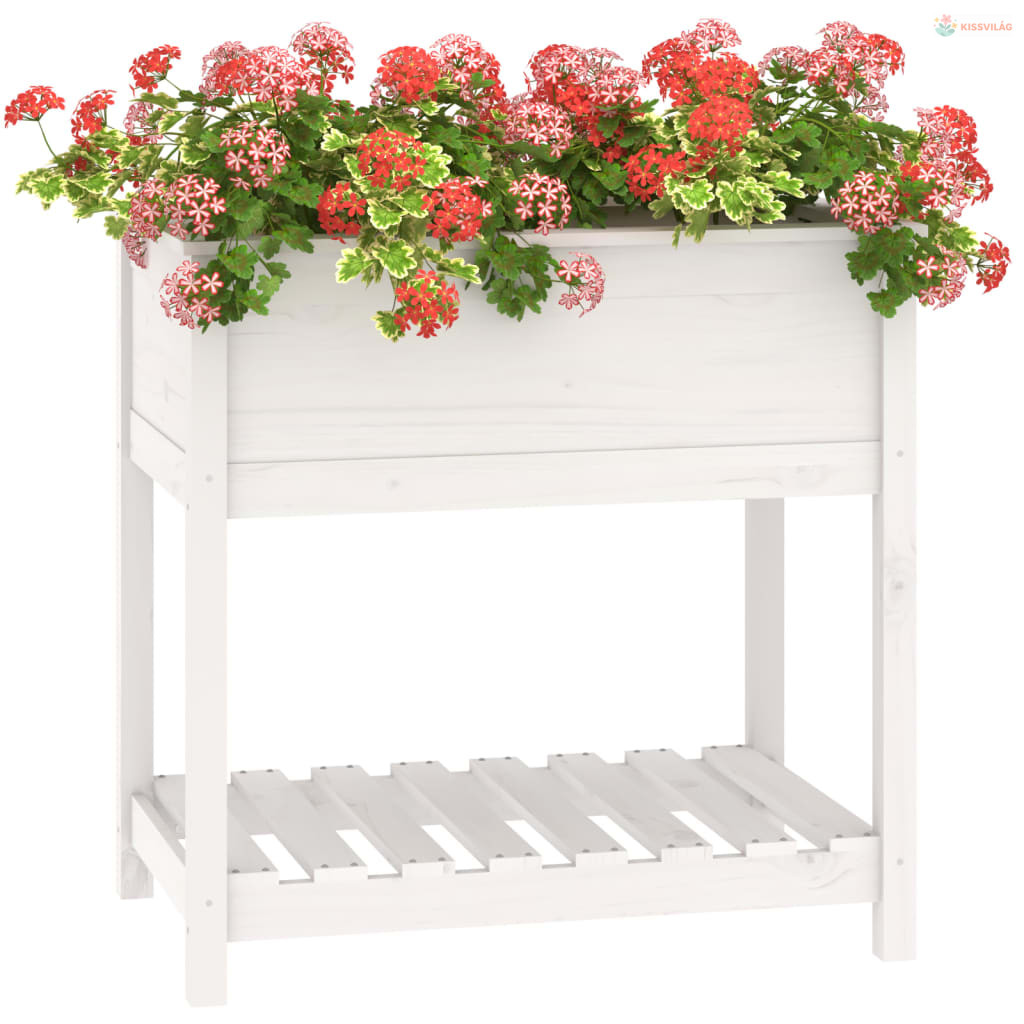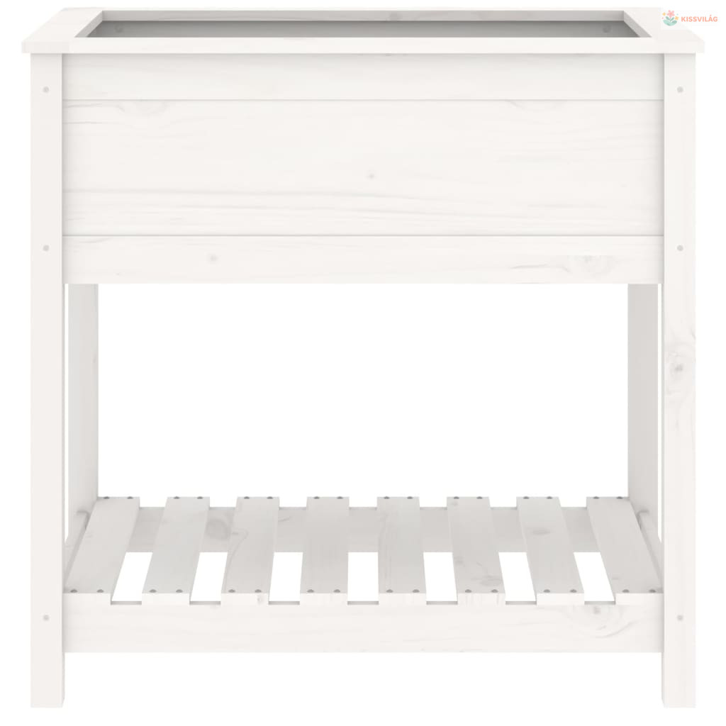 Fehér tömör fenyőfa növénytartó polccal 82,5x54x81 cm