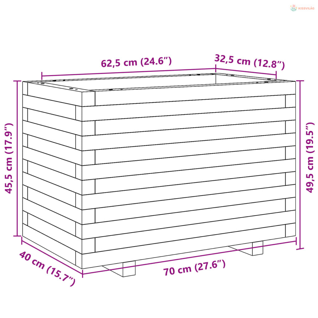 • Bőséges hely: A kerti ültetőláda elég széles és mély ahhoz, hogy nagy mennyiségű föld férjen el benne, és bőséges helyet kínáljon növényei, zöldségei, fűszernövényei és virágai számára.