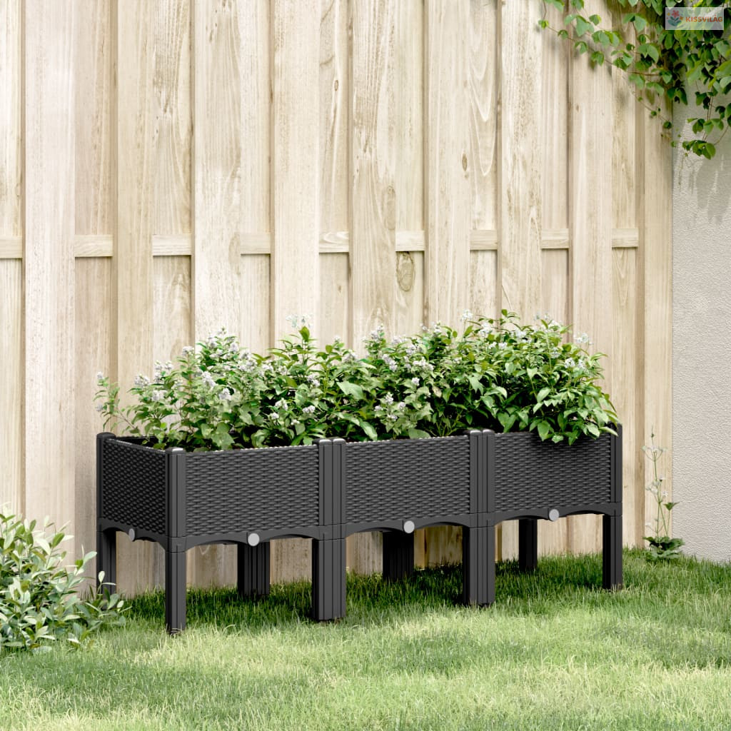 Fekete PP rácsos kerti ültetőláda 120 x 40 x 42 cm