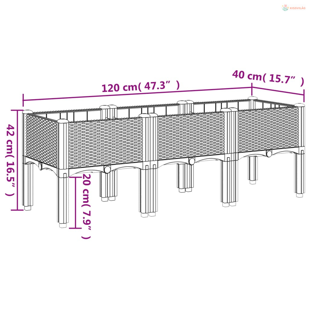 • Magasított kialakítás: Ez az ültetőláda megvédi a növényeket a gyomoktól és kártevőktől az emelt kialakításával.