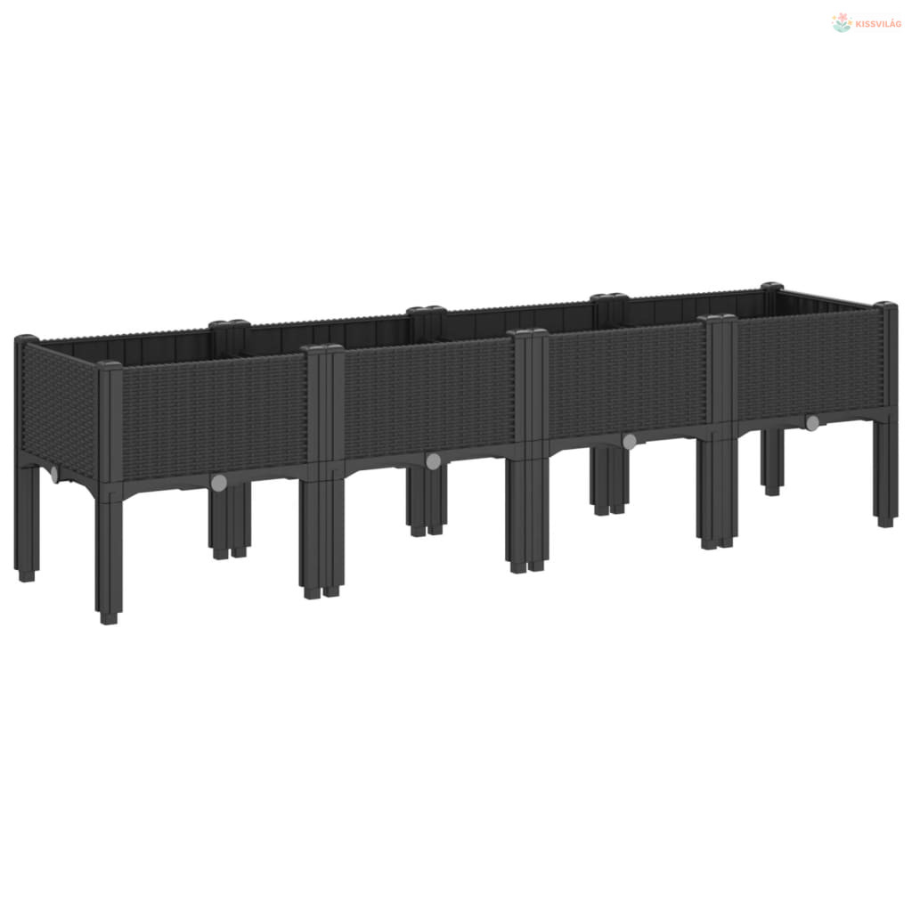 Fekete PP rácsos kerti ültetőláda 160 x 40 x 42 cm