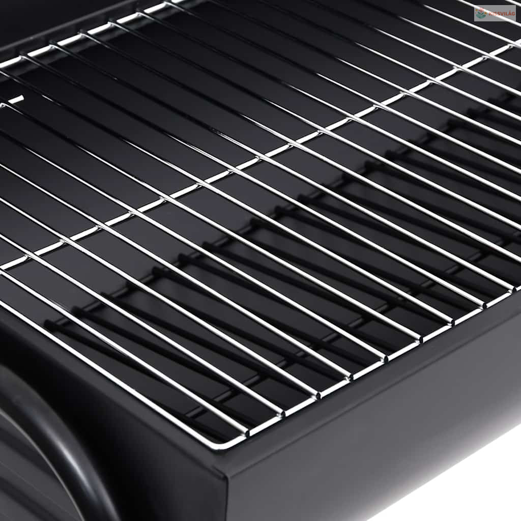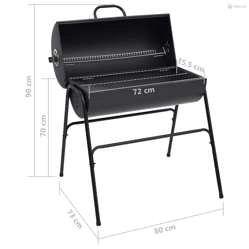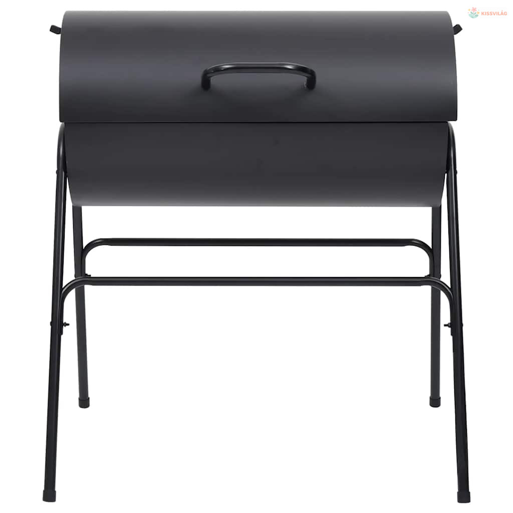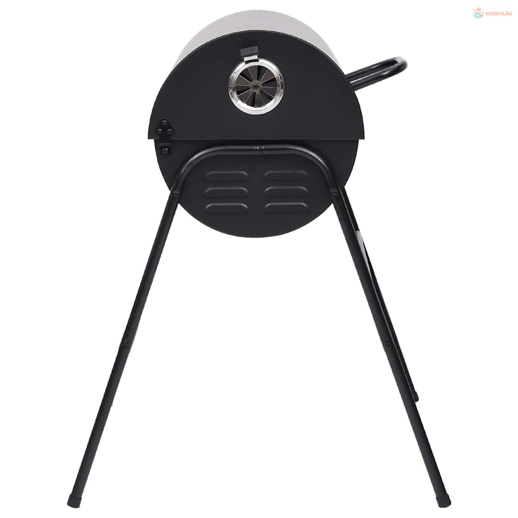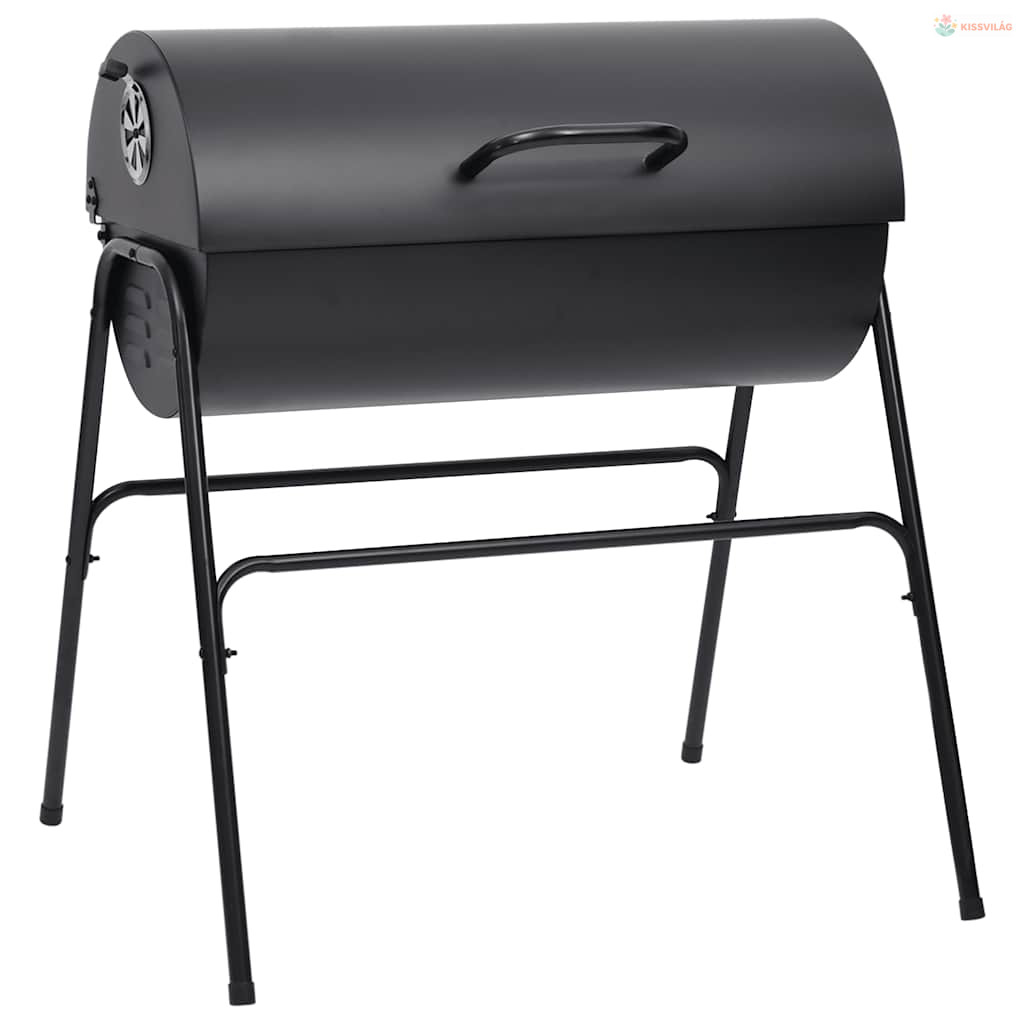 Fekete acél henger alakú grillsütő 2 sütőráccsal 80x95x90 cm