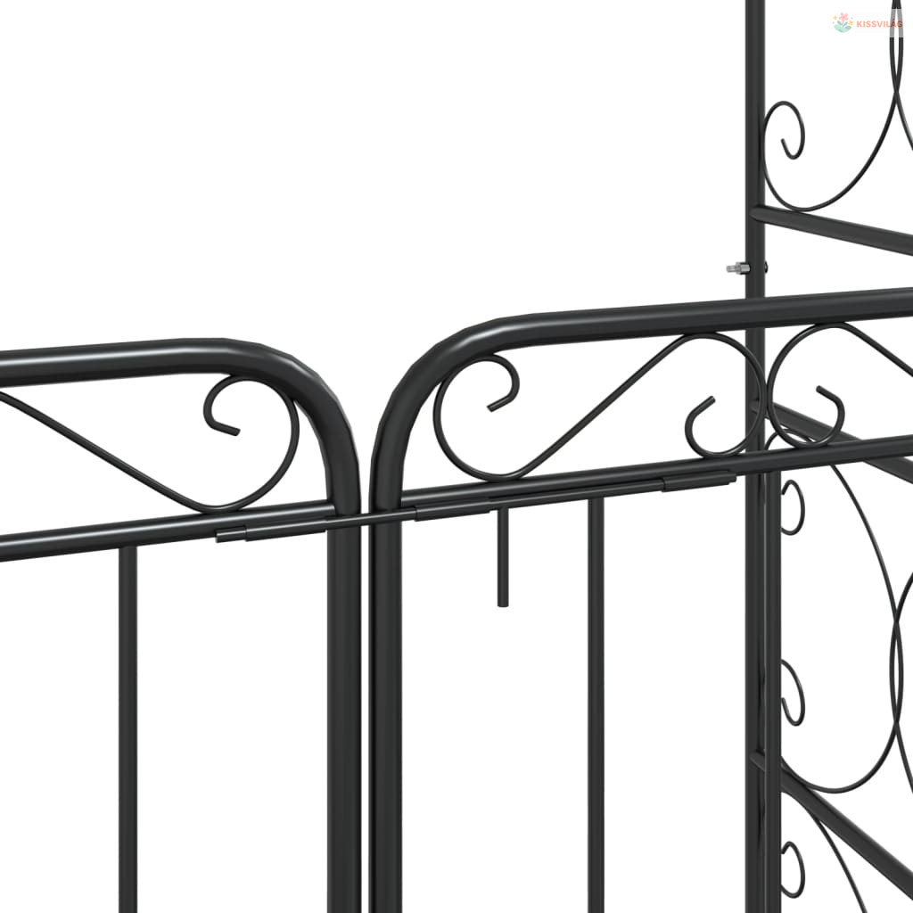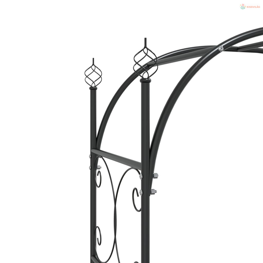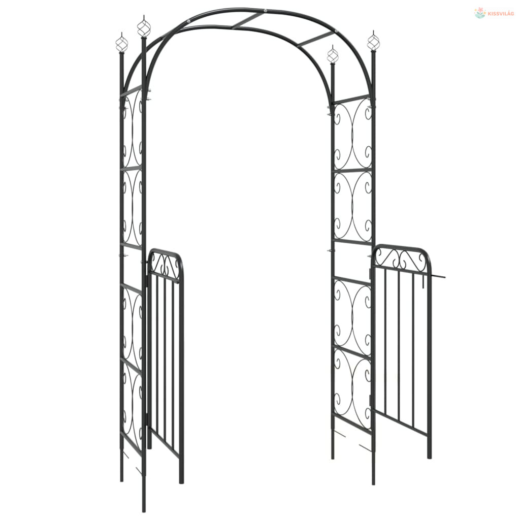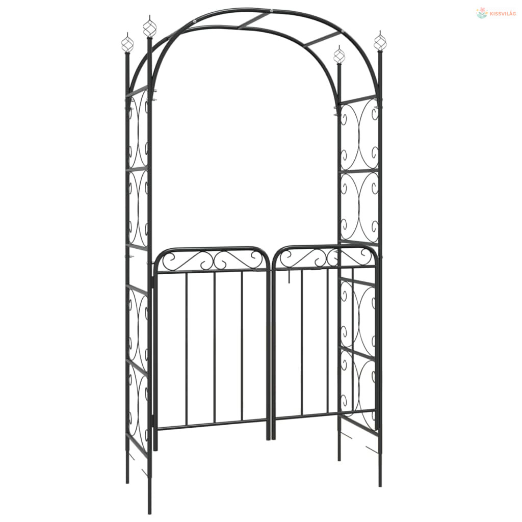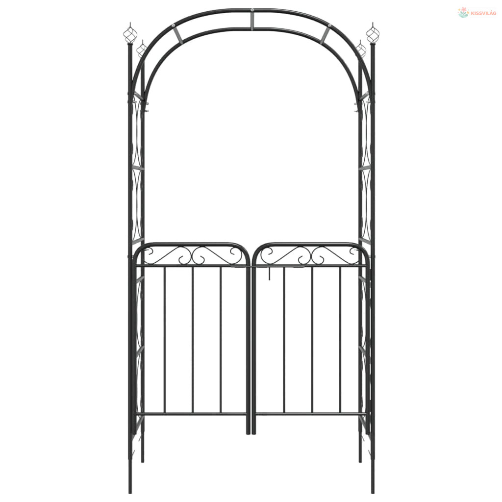Fekete acél kerti boltív kapuval 108 x 45 x 235 cm