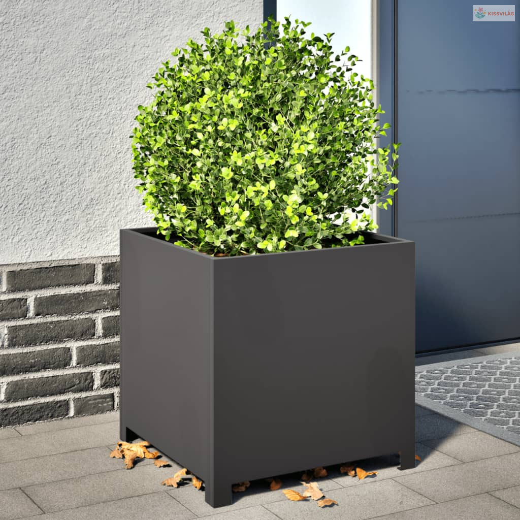 Fekete acél kerti virágtartó 50 x 50 x 50 cm