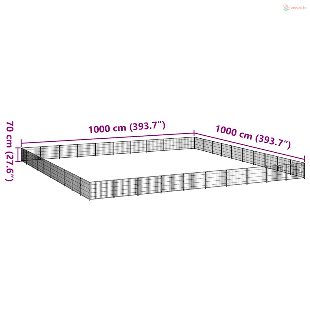 Fekete acél kutyakennel 100 m²