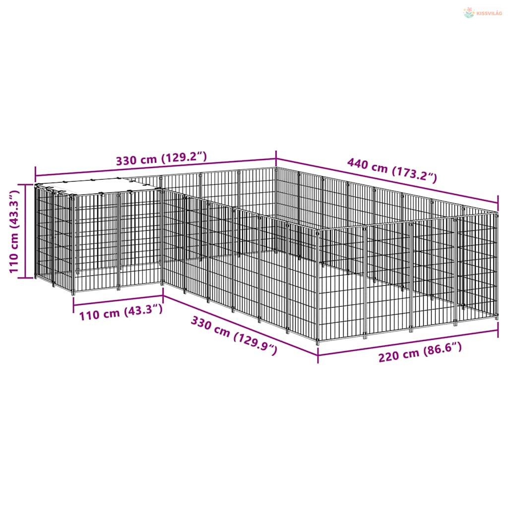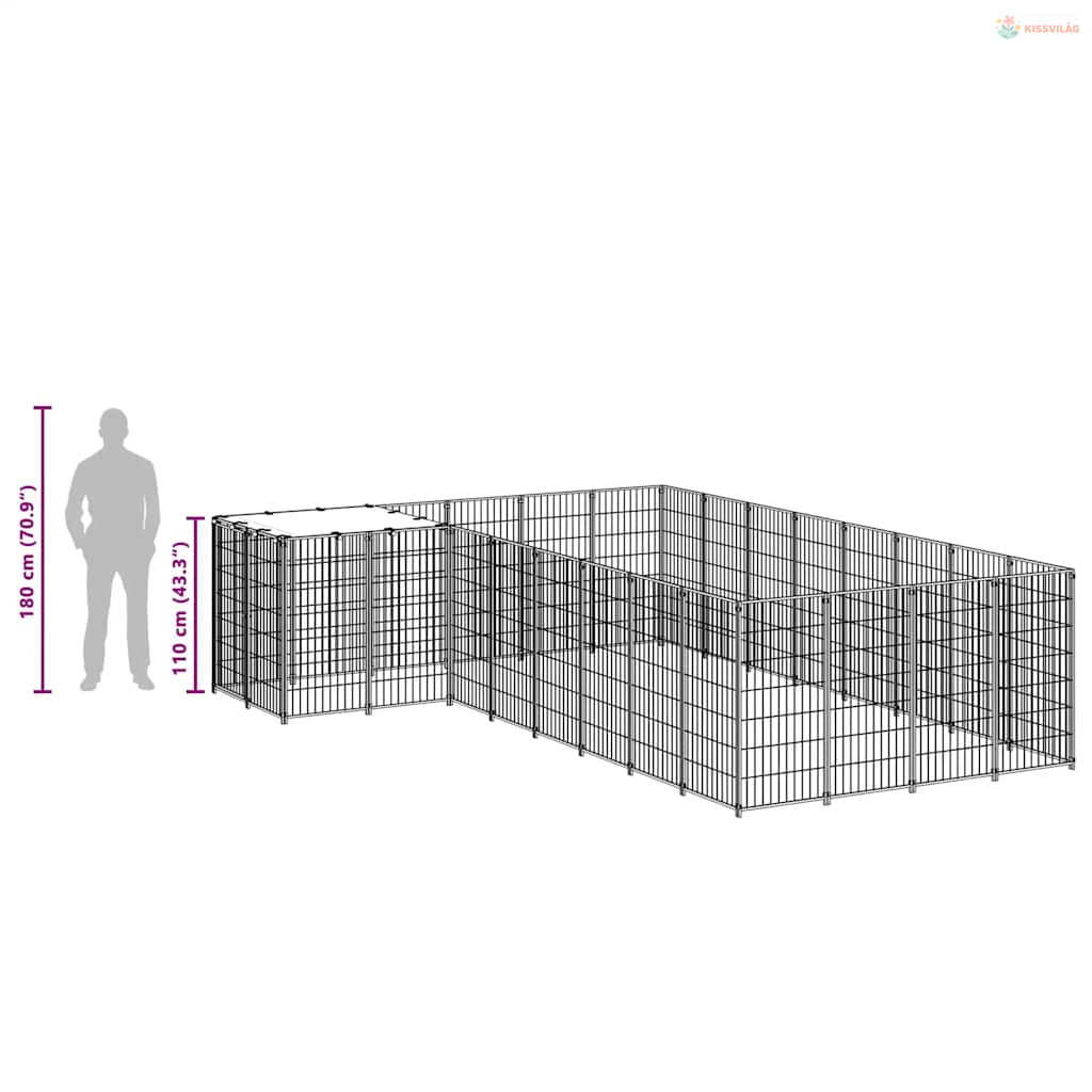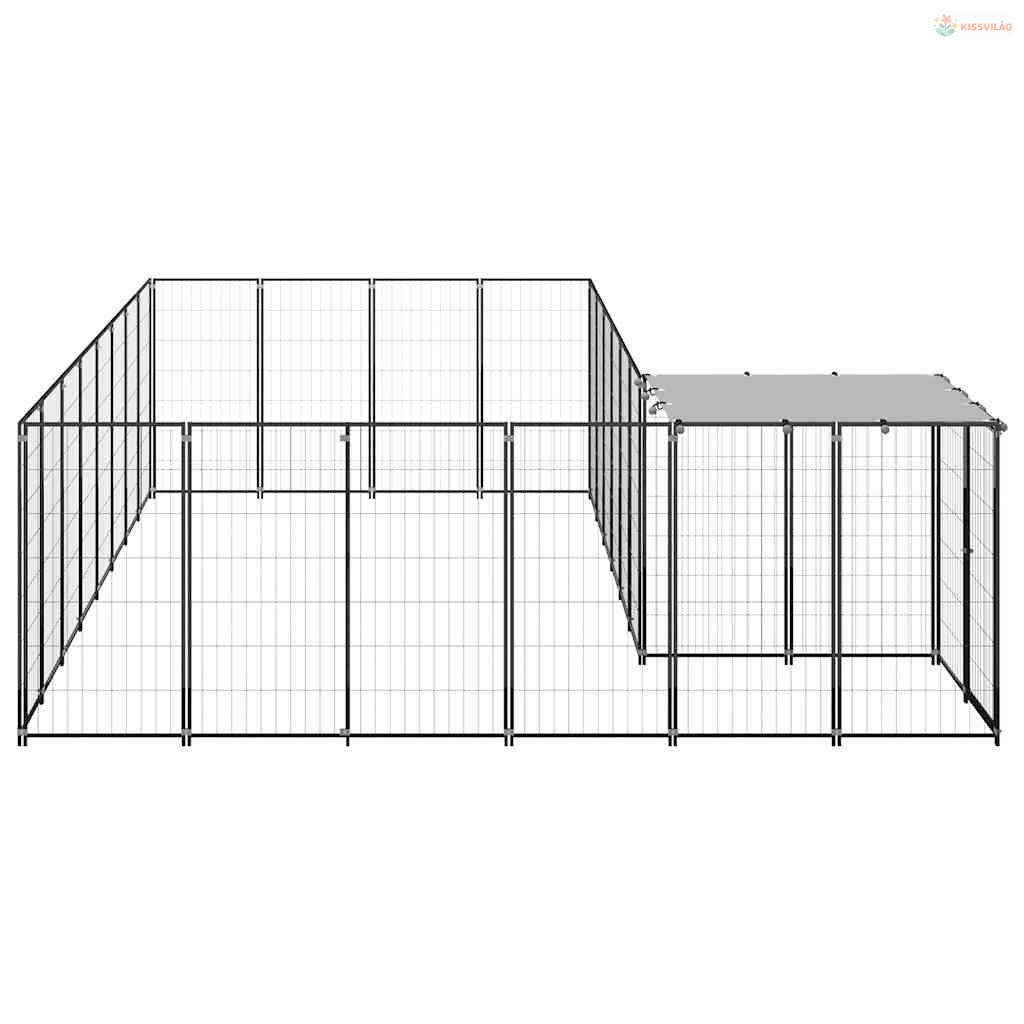 Fekete acél kutyakennel 10,89 m²