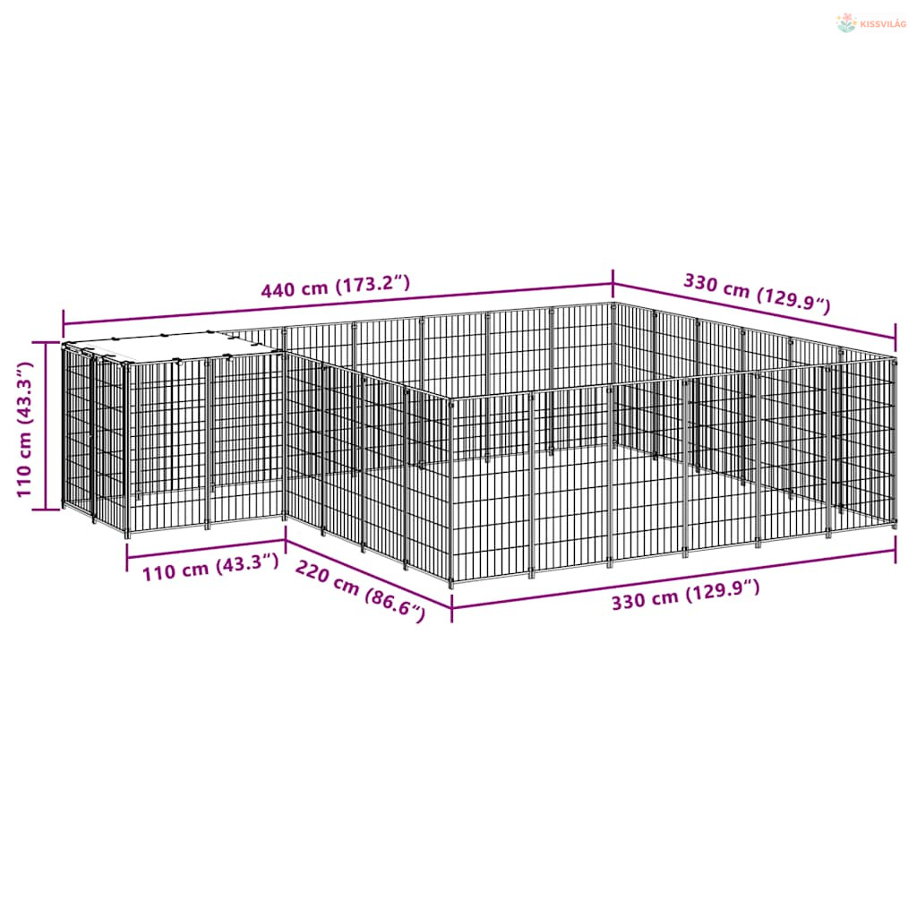 Fekete acél kutyakennel 12,1 m²