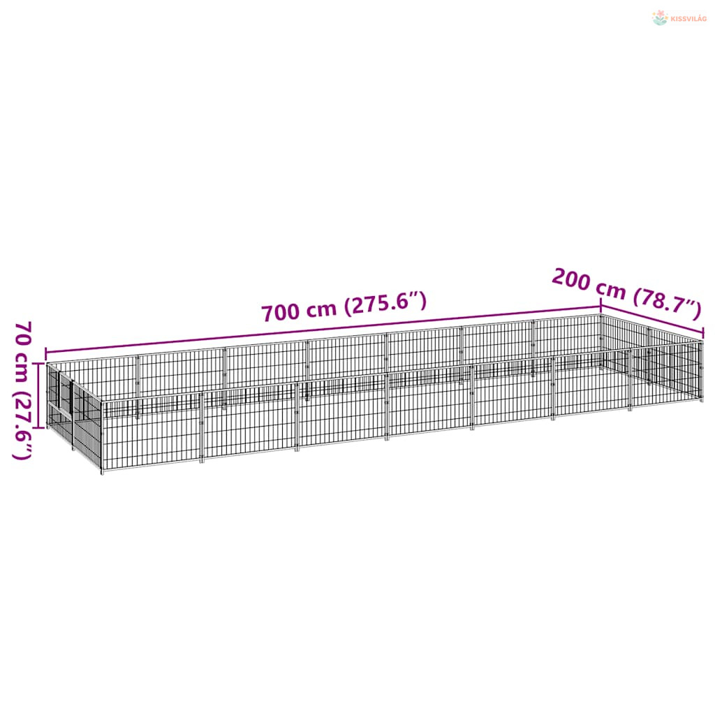Fekete acél kutyakennel 14 m²