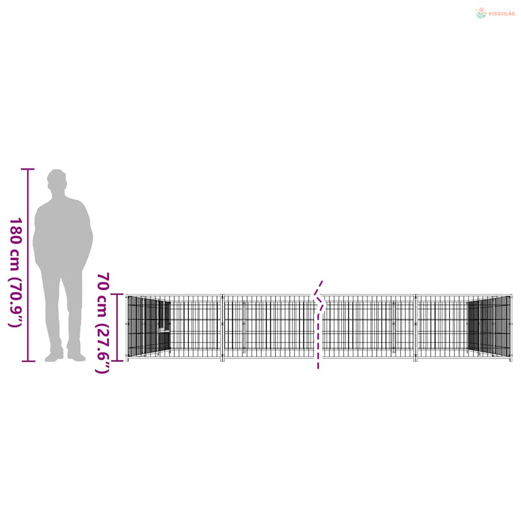 Fekete acél kutyakennel 15 m²