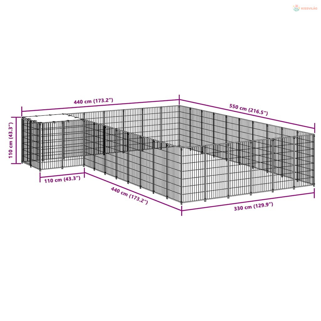 Fekete acél kutyakennel 19,36 m²