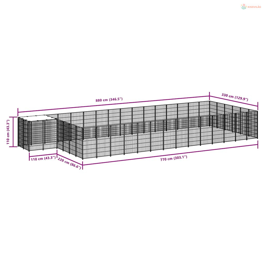 A nagy kutyaketrec bőséges mozgásteret biztosít, míg az acélhálós fal segít megelőzni a váratlan baleseteket, miközben biztosítja a szellőzést. A masszív acélszerkezetnek köszönhetően ez a kisállat-ketrec tartós és hosszú élettartamú. Víz- és UV-álló polietilén tetővel rendelkezik. Ezenkívül az ajtó zárható retesszel rendelkezik, amely extra biztonságot nyújt kutyáinak.