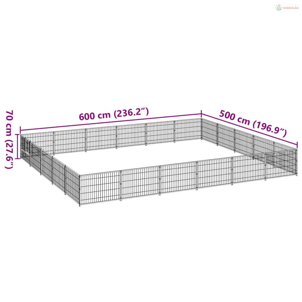 Fekete acél kutyakennel 30 m²