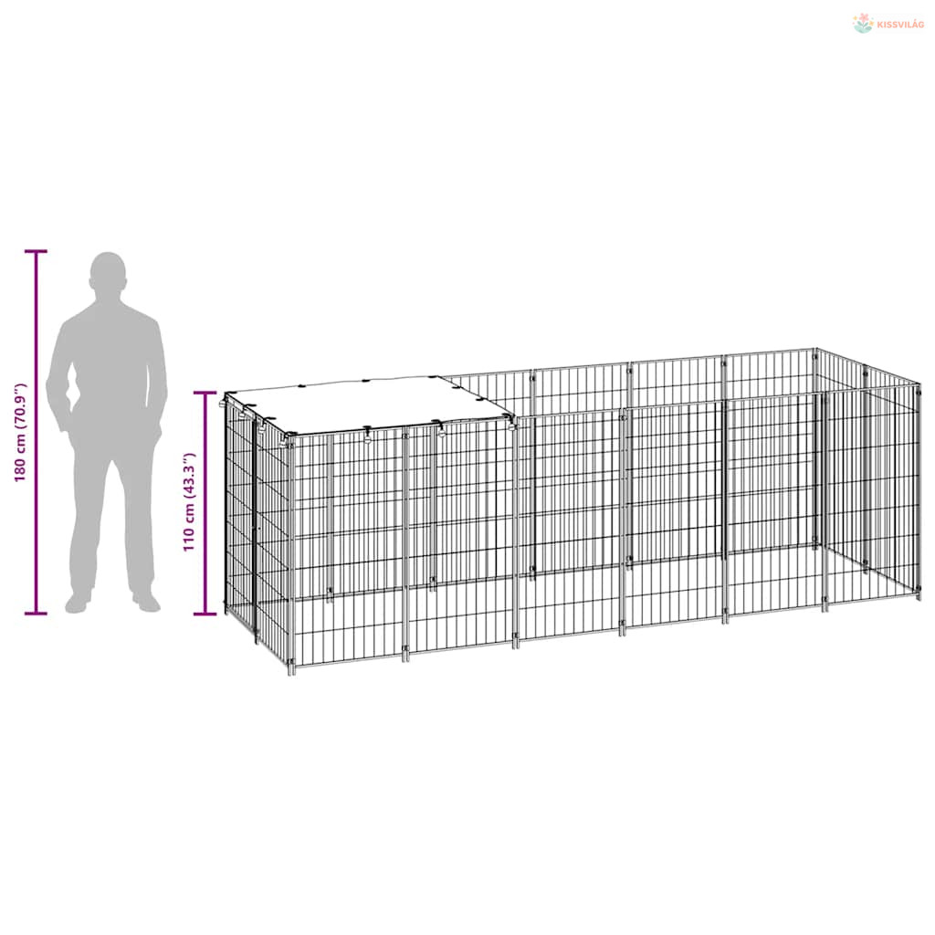 Fekete acél kutyakennel 330 x 110 x 110 cm