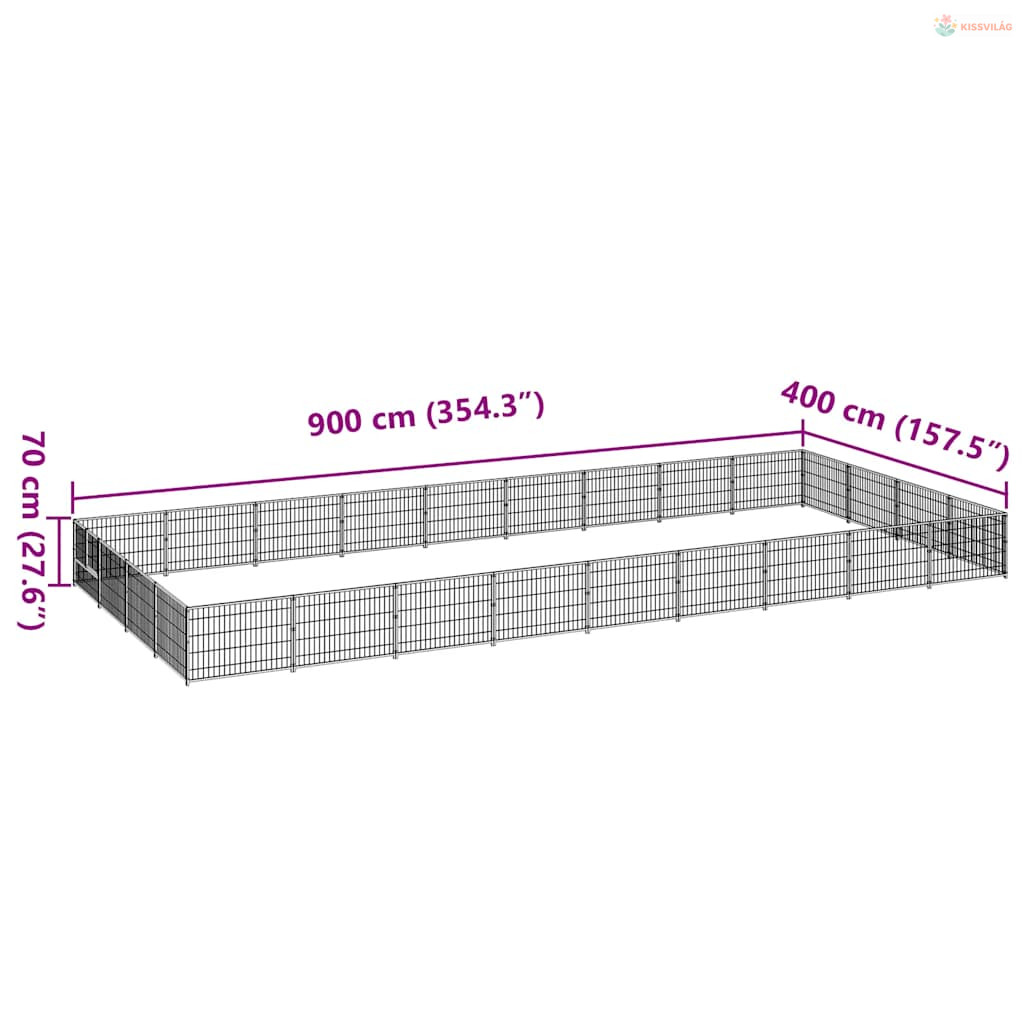 Fekete acél kutyakennel 36 m²