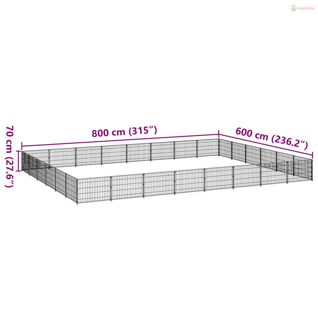 Fekete acél kutyakennel 48 m²