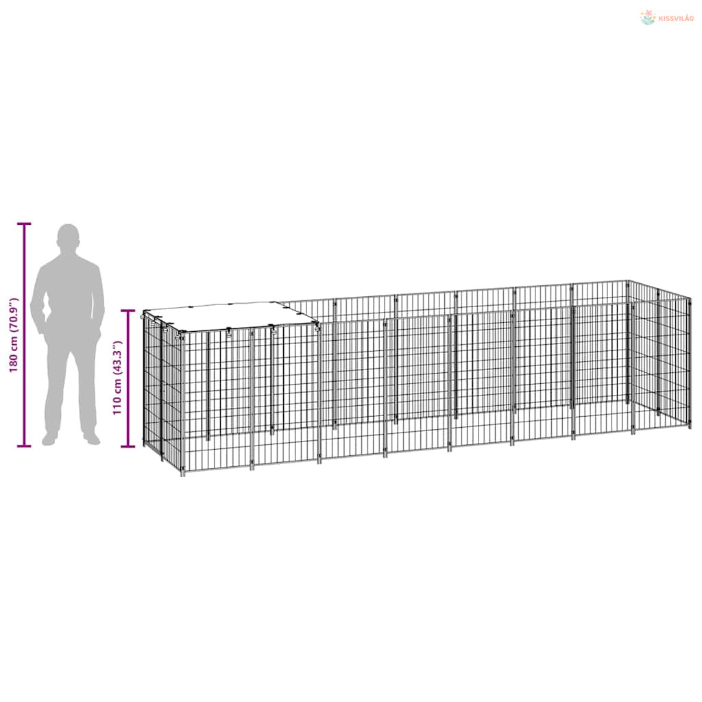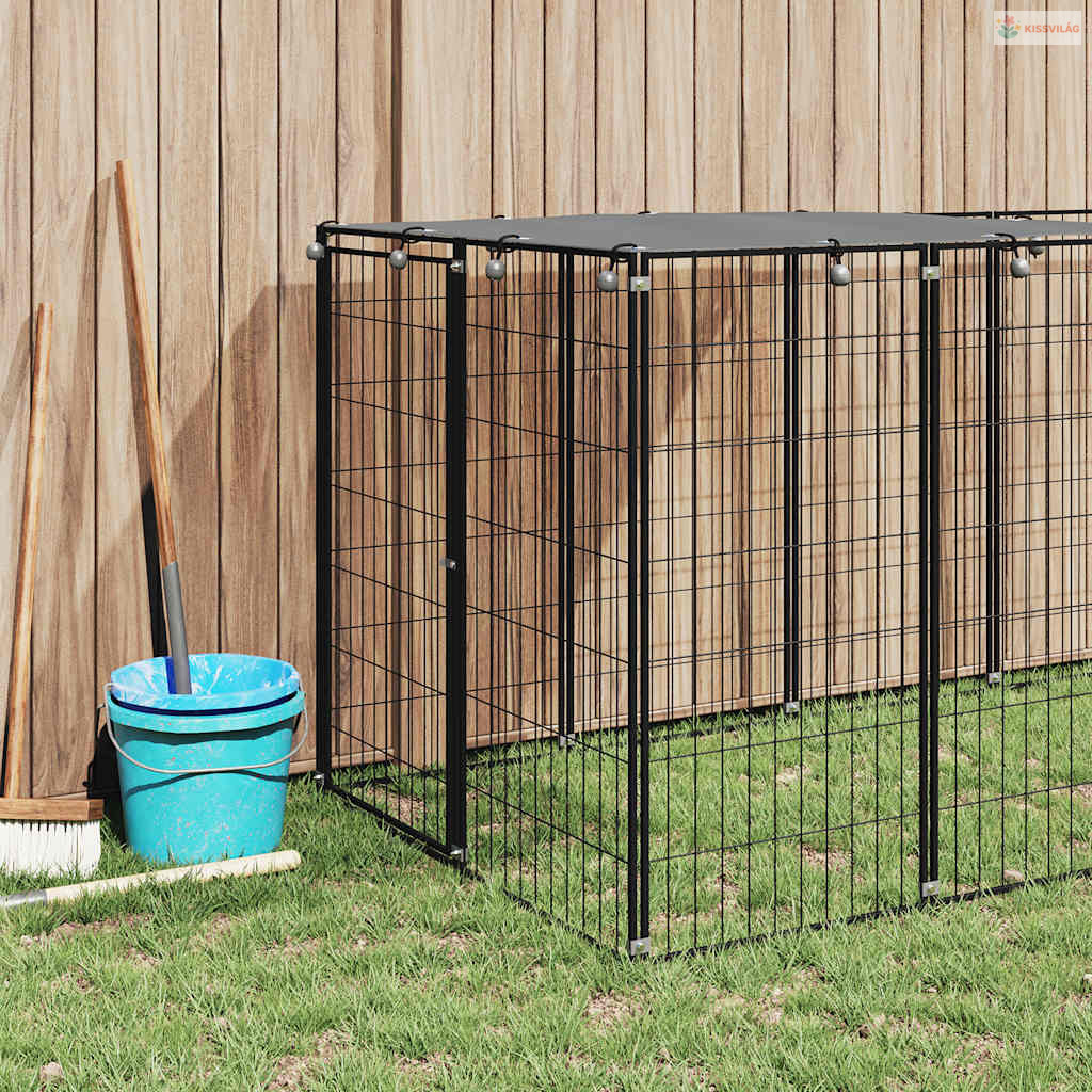 Fekete acél kutyakennel 4,84 m²